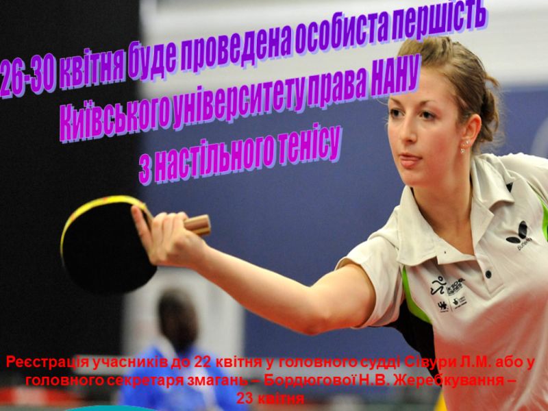 26-30 квітня буде проведена особиста першість КУП НАНУ з настільного тенісу