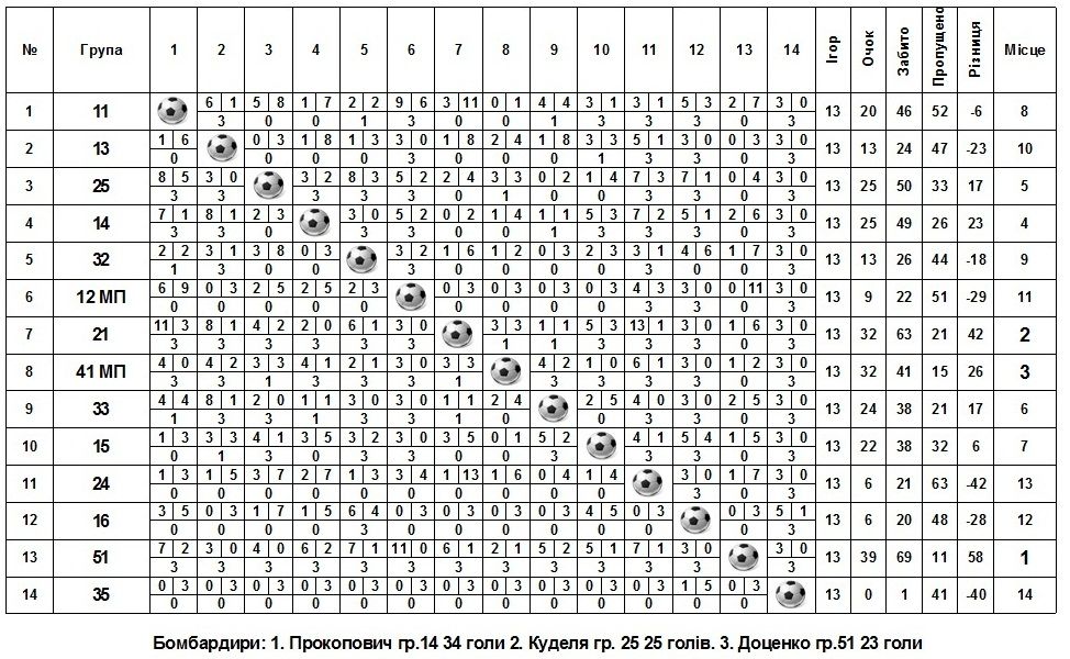 | ХII – тур 35 – 11 МП 12 – 21 24 – 16 13 – 51 25 – 32 14 – 33 МП 41 – 15 | ХIII – тур 35 – 21 16 – 13 24 – 15 11 – 51 25 – МП 12 14 – МП 41 32 – 33 |