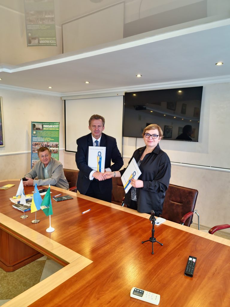 У рамках робочого візиту ректора Київського університету права НАН України Юрія Бошицького до Рівненського інституту відбулося підписання меморандуму з директором Рівненської обласної філармонії Елеонорою Стеценко.
