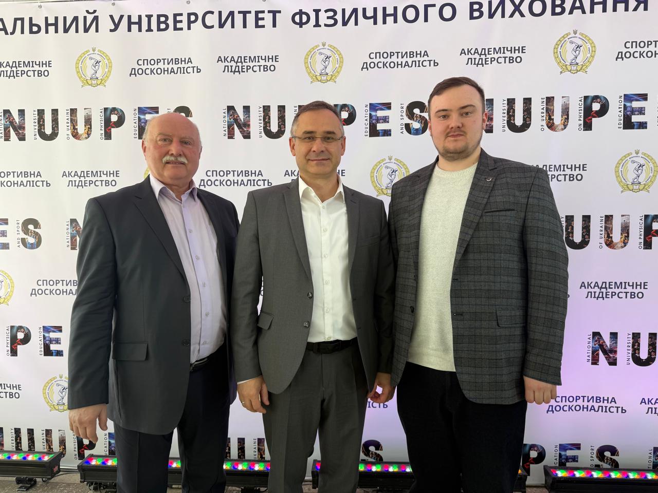 Ректор КУП НАН України, професор Юрій Бошицький, привітав в.о. ректора НУФВСУ Олександра Пижова, вручивши йому вітальну адресу та пам’ятні подарунки від колективу університету. У межах заходу також відбулося особисте спілкування керівників закладів вищої освіти, під час якого обговорювалися перспективи міжуніверситетської співпраці в освітній та науковій сферах.
