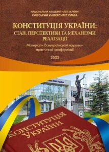 Конституція України: стан перспективи та механізми реалізації: матеріали Всеукр. науково-практичної конференції (Київ, 27 червня 2023 р.) / Національна академія наук України; Київський університет права. Вінниця, ТОВ «Твори», 2023. – 348 с.