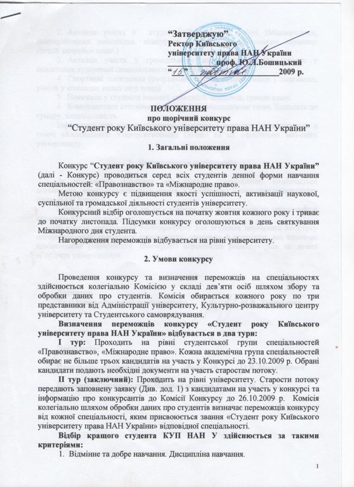 ДО УВАГИ СТУДЕНТІВ!!! ОГОЛОШУЄТЬСЯ КОНКУРС «Студент року Київського університету права НАН України»