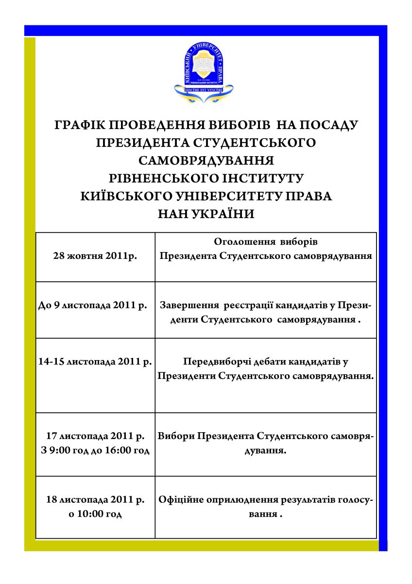 Графік проведення виборів на посаду президента студентського самоврядування Рівненського інституту КУП НАН України.