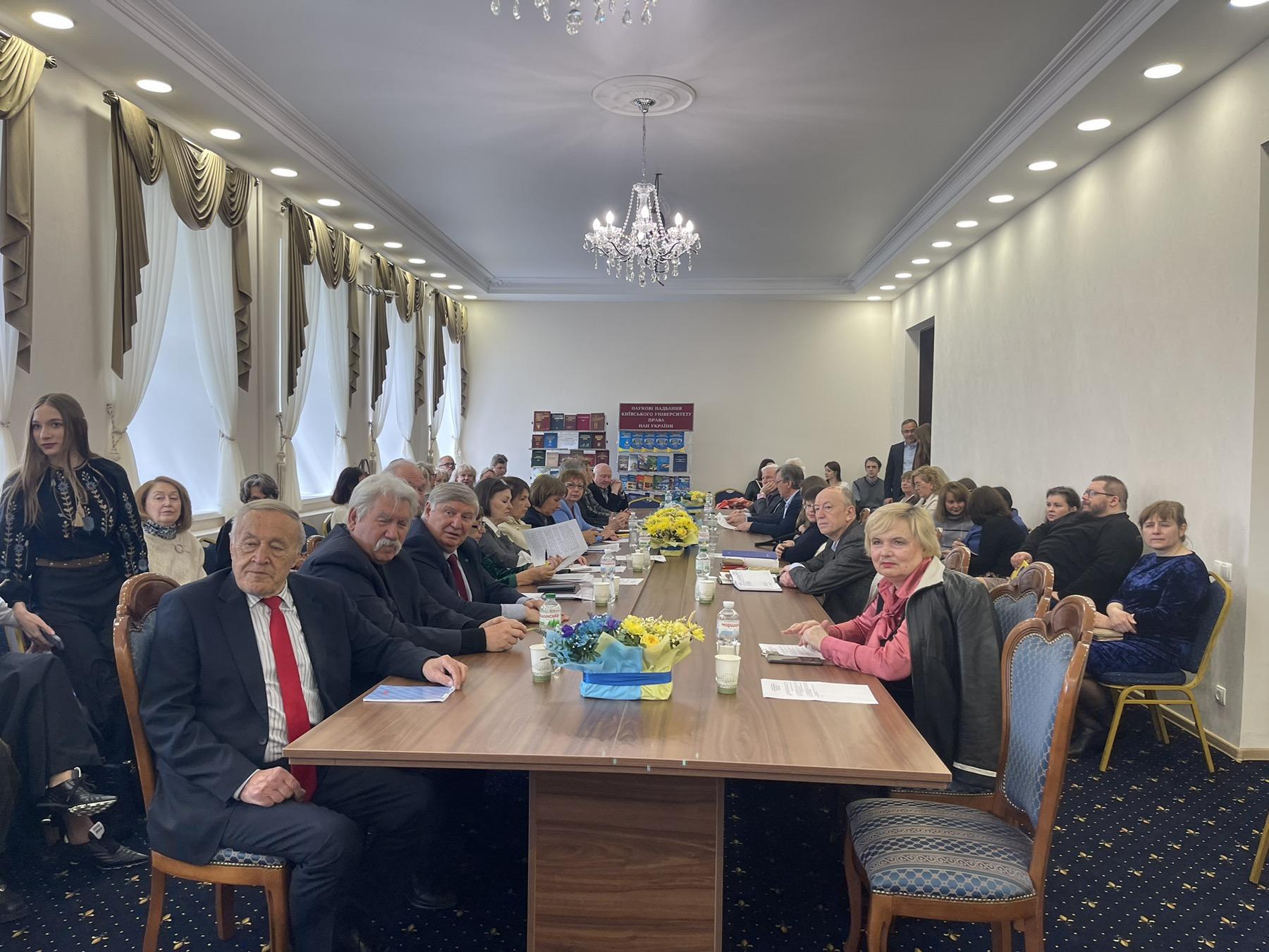 Заслухали грунтовну доповідь директора Інституту, академіка НАПрН України Олександра Скрипнюка «Впевнено крокуючи в майбутнє» до 75-річчя Інституту держави права імені В.М. Корецького НАН України, а також доповідь Миколи Оніщука, ректора Національної школи суддів України, почесного професора КУП НАН України.
