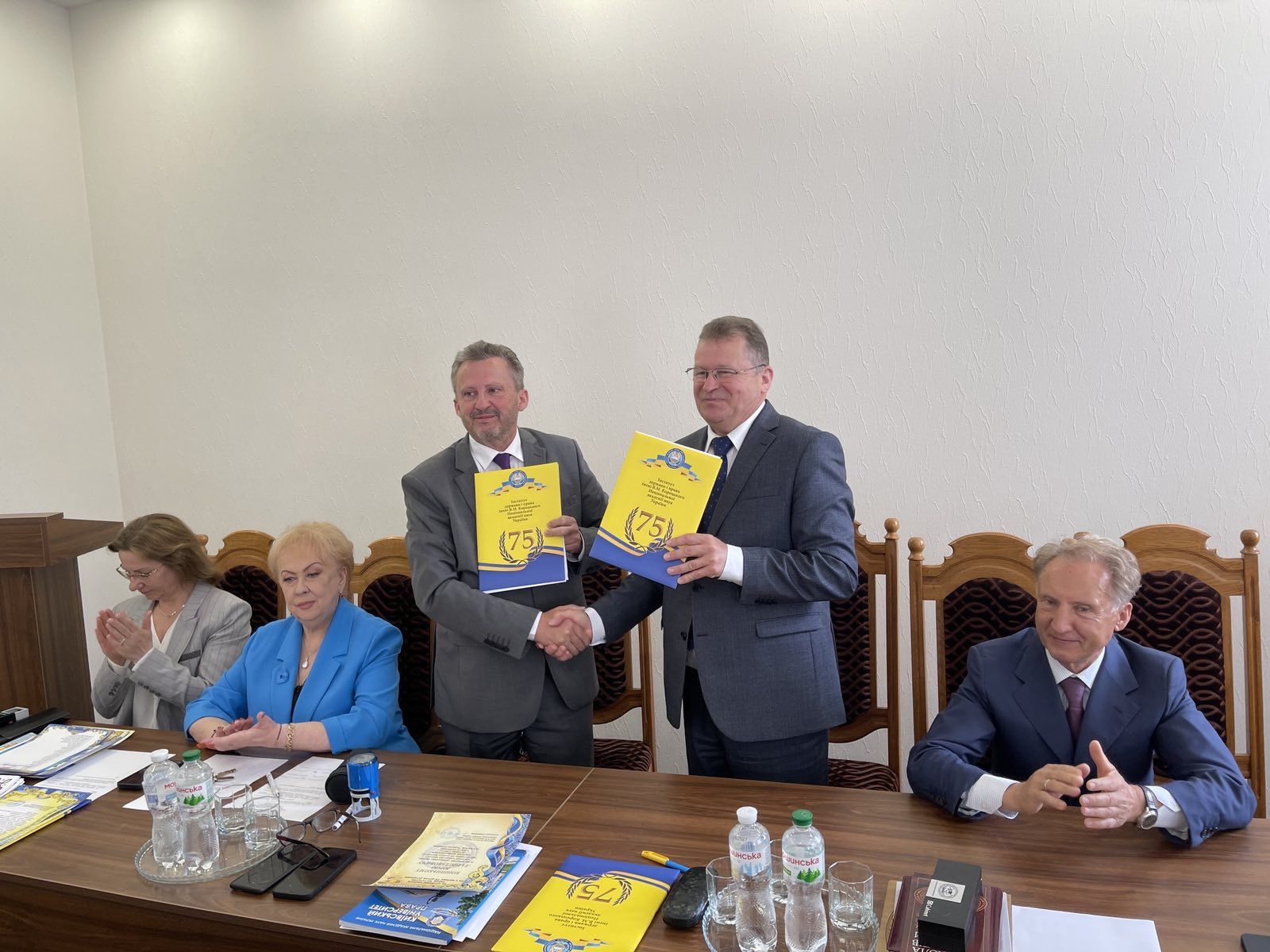 14 травня 2024 року делегація представників КУП НАН України на чолі з ректором КУП НАН України Юрієм Бошицьким та проректором з наукової роботи Юрієм Кайлом, завідувачкою аспірантури Раїсою Перелигіною, представниками студентського парламенту взяли участь в урочистому розширеному засіданні Вченої ради Інституту держави права імені В.М. Корецького НАН України з нагоди 75-річчя Інституту.
