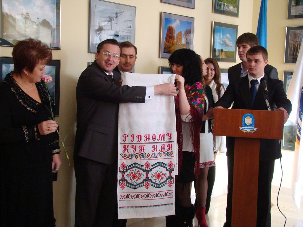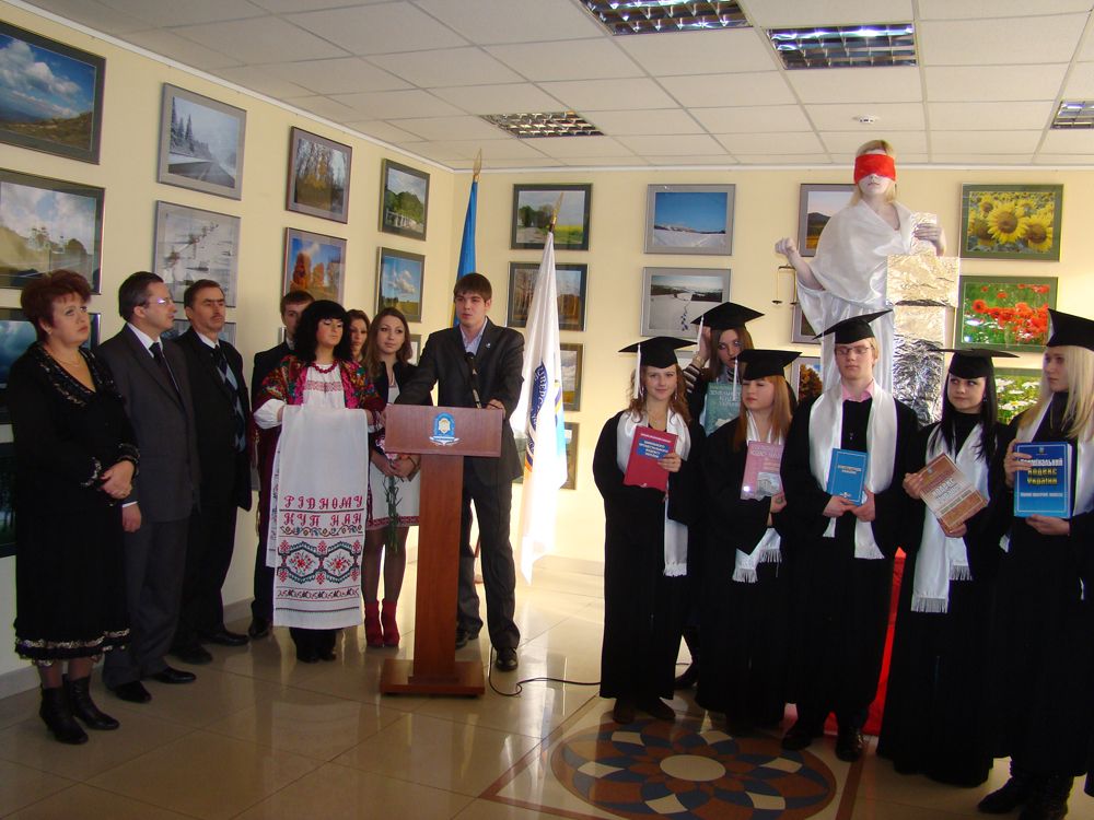 Представники студентського самоврядування подарували рідному Університету вишитий рушник з ініціалами та побажаннями подальшого процвітання. Творча молодь Університету зробила подарунок у вигляді живої скульптури Феміди на захисті якої стояли студенти в мантіях з різноманітними кодексами України у руках,як символ захисту права в Україні.