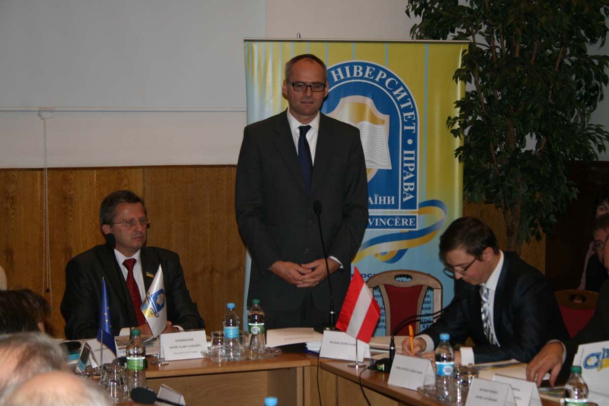 Посол Австрійської Республіки в Україні пан Вольф Дітріх Хайм також у своєму вітальному слові підкреслив значення конференції для науковців і практиків та побажав учасникам плідної роботи.