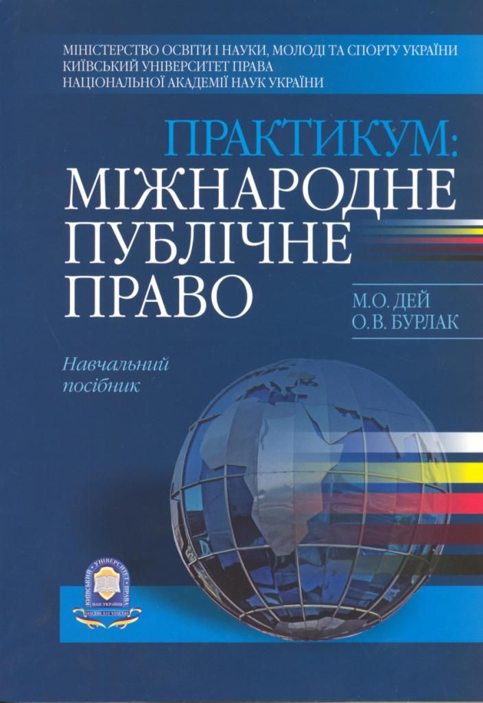 Для студентів вищих юридичних закладів та факультетів, спеціалістів-практиків, наукових працівників і всіх, хто цікавиться проблемами міжнародного права.Дей М.О., Бурлак О.В.Практикум: Міжнародне публічне право. Навч. посібник / М.О. Дей, О.В. Бурлак. – К.: ПП Фірмат Гранмна, 2012. – 256 с.