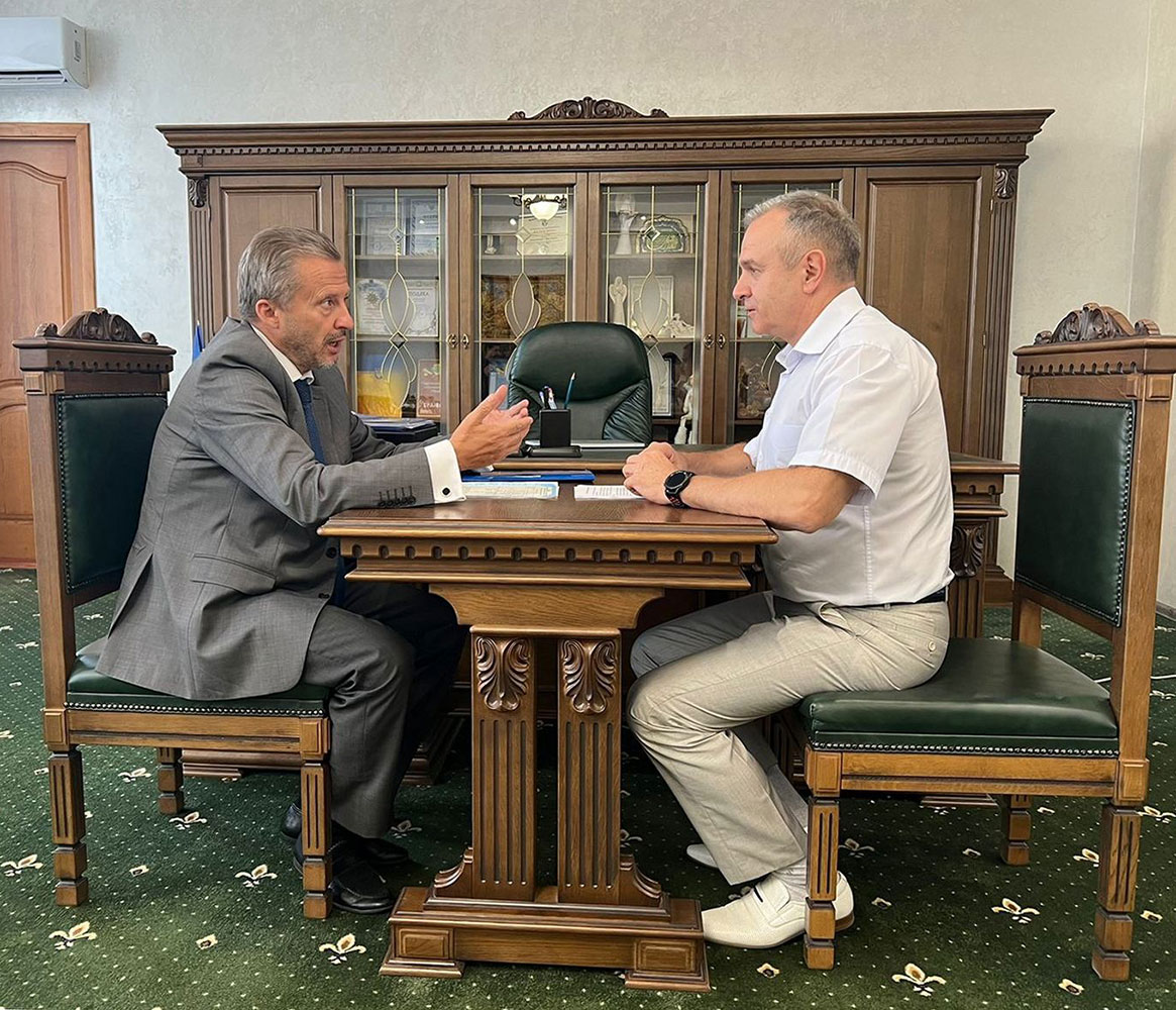 Для представників КУП НАН України Університетом провели екскурсію, познайомили з його історією та принципами й особливостями роботи. Головною метою зустрічі було налагодження партнерських звʼязків між двома ВНЗ – підписання ряду меморандумів, зокрема договору оренди однієї з будівель, що підпорядковуються КУП НАН України, терміном на 49 років.