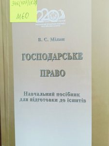 ![]() | Мілаш В.С. Господарське право : навч. посіб. для підгот. до іспитів : 8-ме вид. змін. Харків : Право, 2024. 400 с. У навчальному посібнику відповідно до програми курсу висвітлено питання загальної та особливої частин господарського права на основі чинного законодавства, навчальних і наукових видань. |