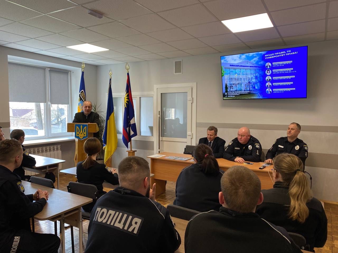 У рамках підписаного меморандуму про співпрацю, між Вищим професійним училищем ДПО та Київським університетом права НАН України, відбулася профорієнтаційна зустріч для слухачів закладу, під час якої керівник КУП НАНУ розповів про історію розвитку університету, кадровий потенціал, матеріально-технічне забезпечення, освітні проєкти та міжнародні зв‘язки, а також, про можливості молоді отримати якісну юридичну освіту в університеті права та перспективи працевлаштування.