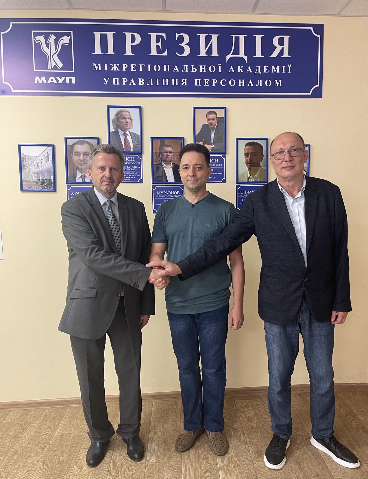 Під час робочої поїздки до Трускавця ректор КУП НАН України, професор – Юрій БОШИЦЬКИЙ завітав до Прикарпатського інституту імені М. Грушевського ПрАТ «ВНЗ МАУП». В ході зустрічі було підписано Меморандум про співпрацю між Прикарпатським інститутом імені М. Грушевського ПрАТ «ВНЗ МАУП» та Київським університетом права Національної академії наук України. Документ підписали очільники ВНЗ: ректор КУП НАНУ, професор, Заслужений юрист України – Юрій БОШИЦЬКИЙ та директор ПІ МАУП, професор Європейського професійного докторату – Юрій ШУЛЬЖИК.