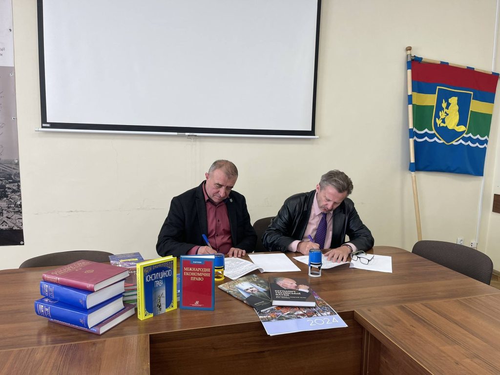 На завершення візиту, ректор Юрій Бошицький передав для бібліотек та шкіл Бібрської міської територіальної громади юридичну літературу в рамках нового спільного проєкту КУП НАНУ та столичним видавництвом «ЮРІНКОМІНТЕР». Даний проект має назву – «Популяризація юридичної освіти та професії в колах учнівської молоді України».