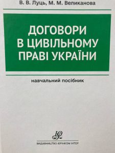 Луць В.В., Великанова М.М. Договори в цивільному праві України: навч. посібник. 2-ге вид., допов. і перероб. – Київ: Юрінком Інтер, 2023.308 с.