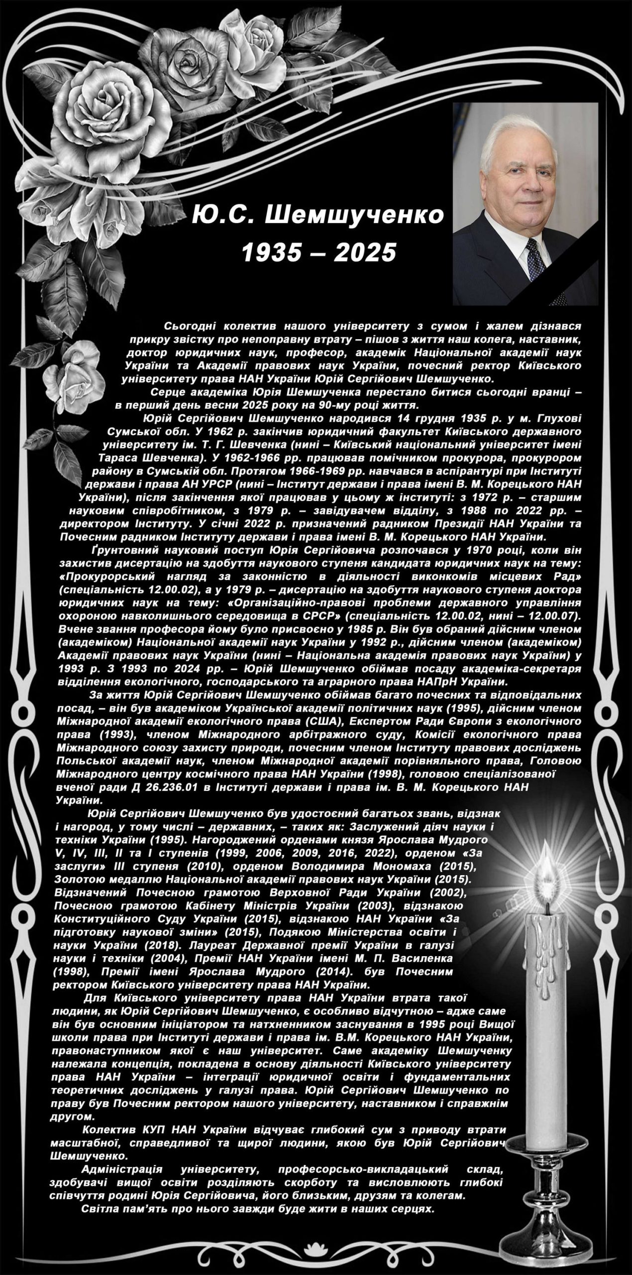 Пішов з життя Юрій Сергійович Шемшученко – наш колега, наставник, почесний ректор КУП НАН України