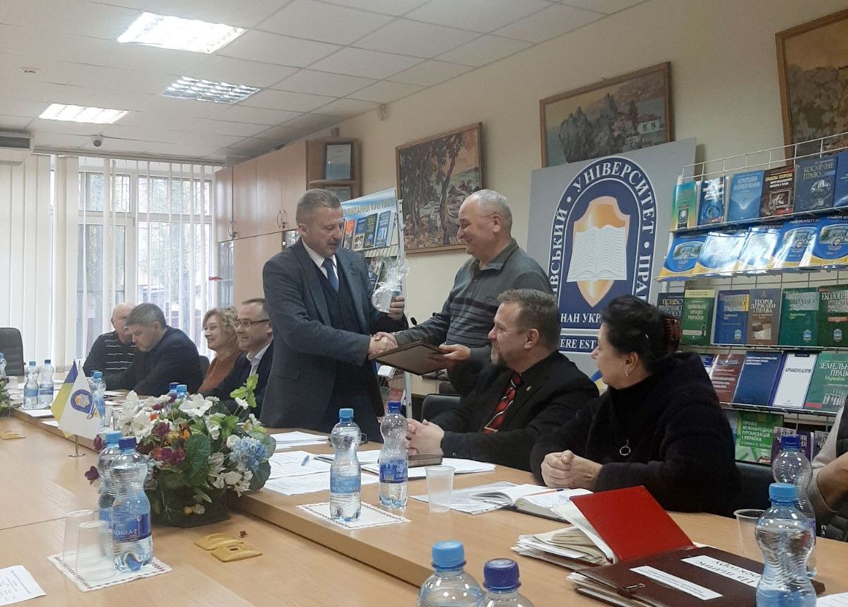 На завершення засідання Вченої ради відповідального секретаря приймальної комісії КУП НАН України Івана Канфуі очікувала приємна несподіванка: високі результати його професійної діяльності були відзначені подякою та цінним подарунком, які йому вручив голова Вченої ради.
