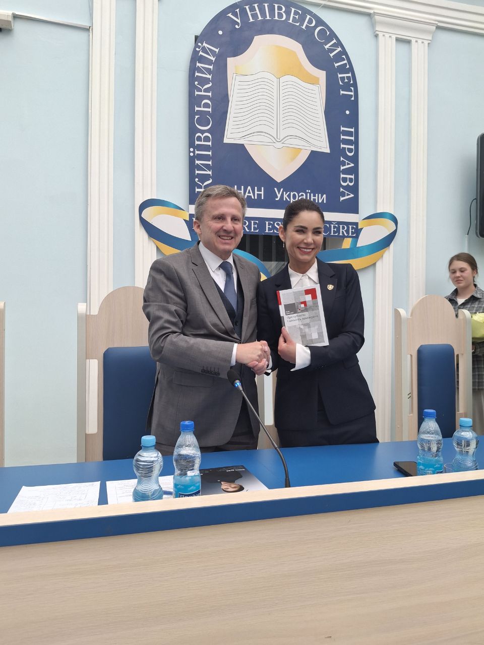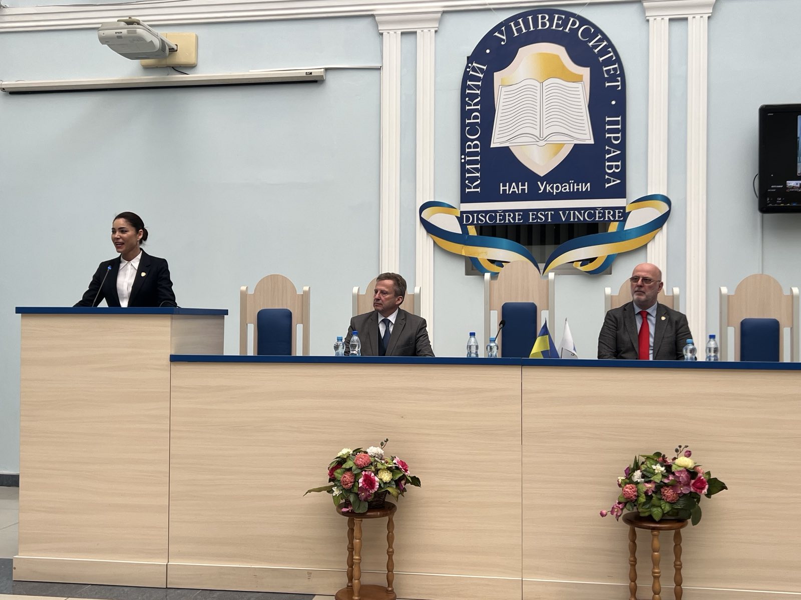 Наприкінці науково-просвітницького заходу виступив ректор Київського університету права НАН України, професор, Заслужений юрист України Юрій Бошицький, який підбив підсумки зустрічі, подякував спікеру та членам почесної делегації а також усім присутнім, зазначивши, що сьогоднішній майстер-клас, проведений шановною гостею нашого університету, став черговим у циклі заходів, направлених на відродження славної традиції Київського університету права НАН України, щодо реалізації креативного проєкту університету «Діалоги відомих особистостей зі студентами Київського університету права НАН України». Захід відбувся за сприяння очільника партнера університету, шеф-редактора Часопису «Київ дипломатичний» & Magazine «Kyiv diplomatic» Олександра Кондратенка.