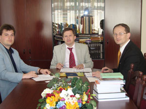 В рамках співпраці КУП НАНУ з Координаційною радою молодих юристів України при Міністерстві юстиції України 16 травня в приміщенні університету відбулася зустріч ректора професора Ю.Бошицького з лідерами ради С.Бігуном та О.Клименком.