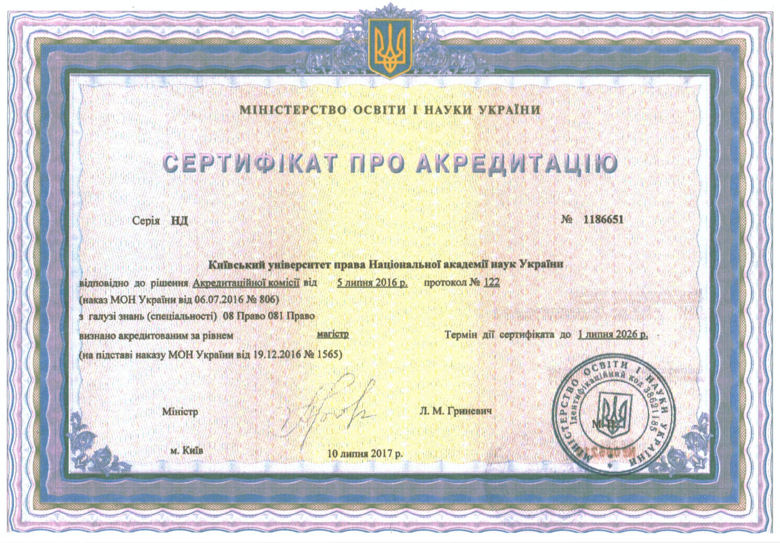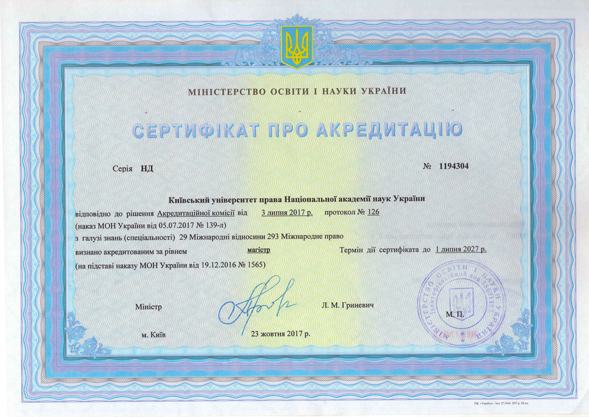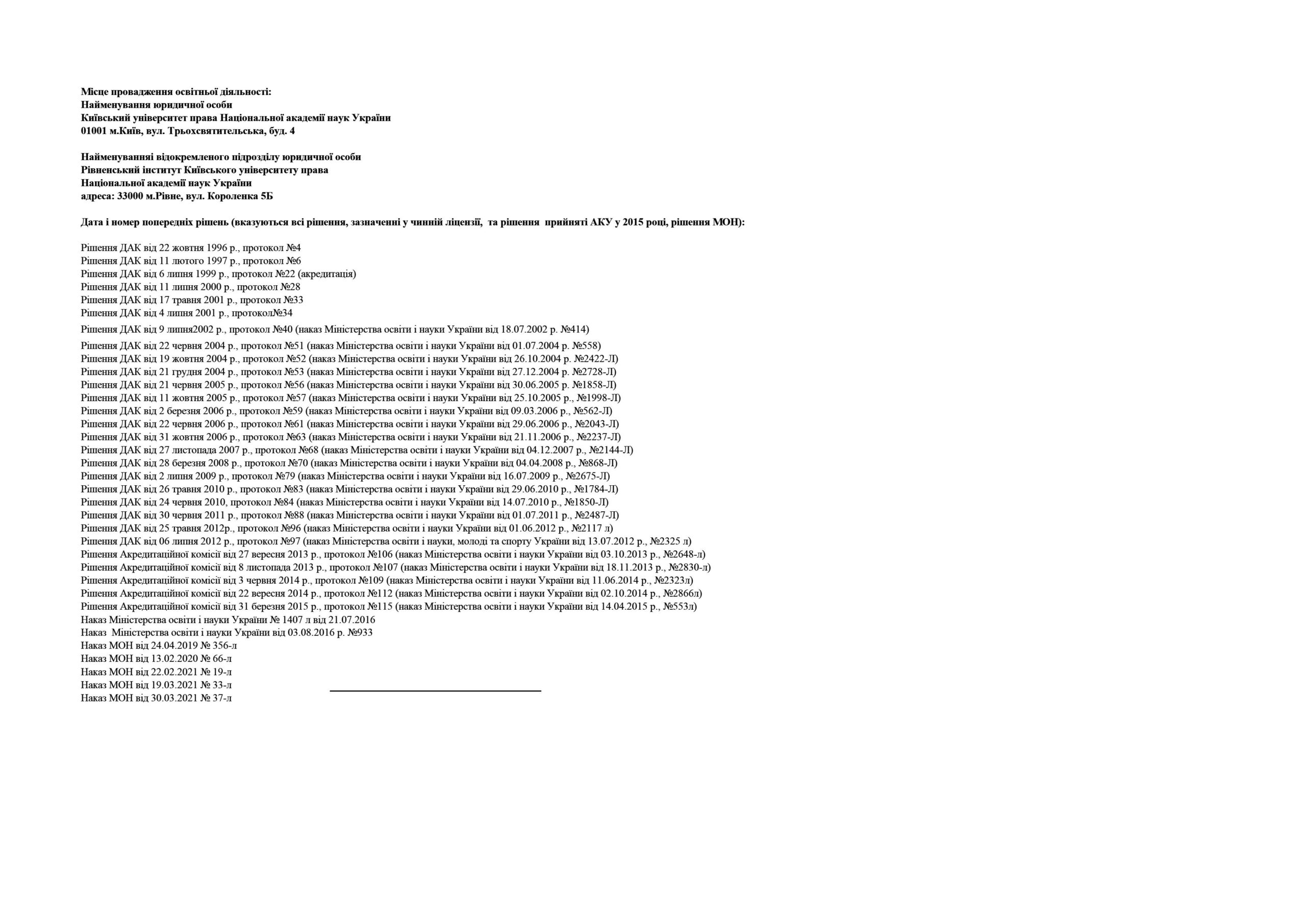 Відомості щодо здійснення освітньої діяльності у сфері вищої освіти Київським університетом права НАН України в Ліцензійному реєстрі суб’єктів освітньої діяльності у сфері вищої освіти: