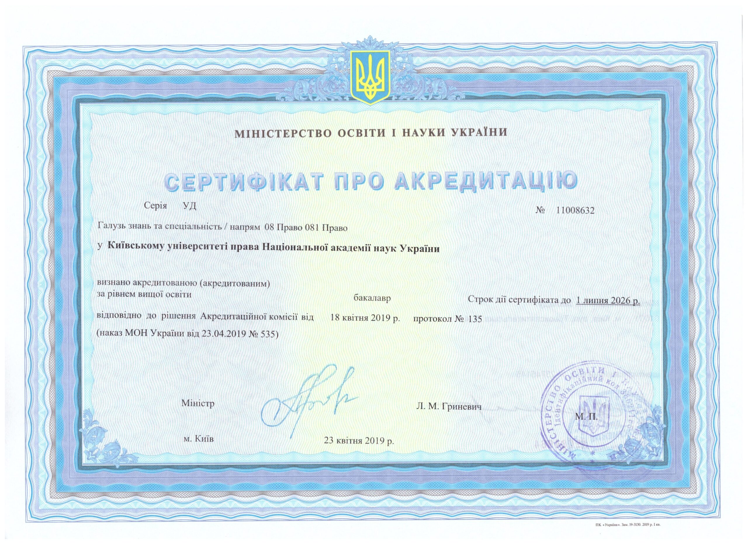- 081 «Право», освітня програма «Право»;