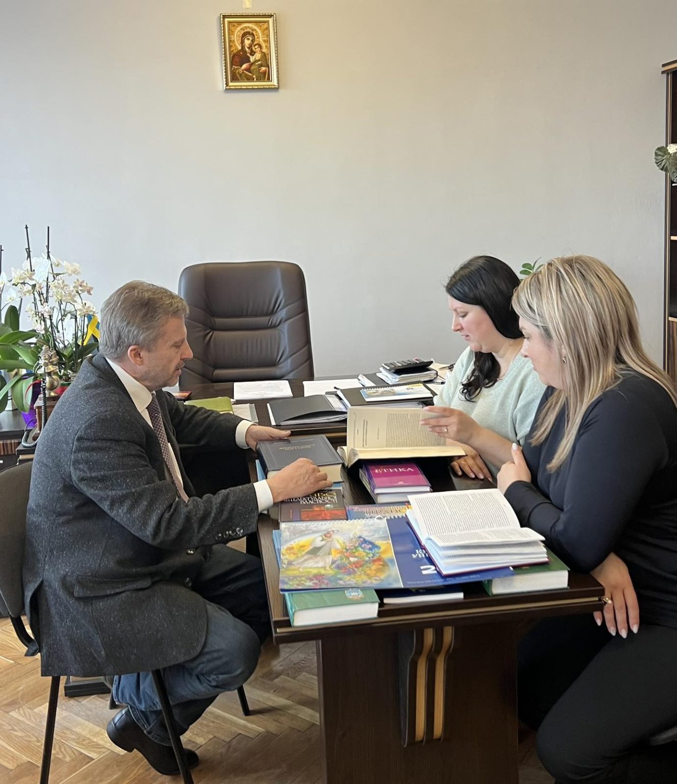 Перебуваючи з робочим візитом на Львівщині, ректор КУП НАНУ, професор Юрій Бошицький відвідав виконавчий комітет Старосамбірської міської ради Самбірського району Львівської області, де провів зустріч з керівником відділу освіти Ольгою Коваль з нагальних питань в рамках Меморандуму про співробітництво і партнерство, який був підписаний в 2024 році.