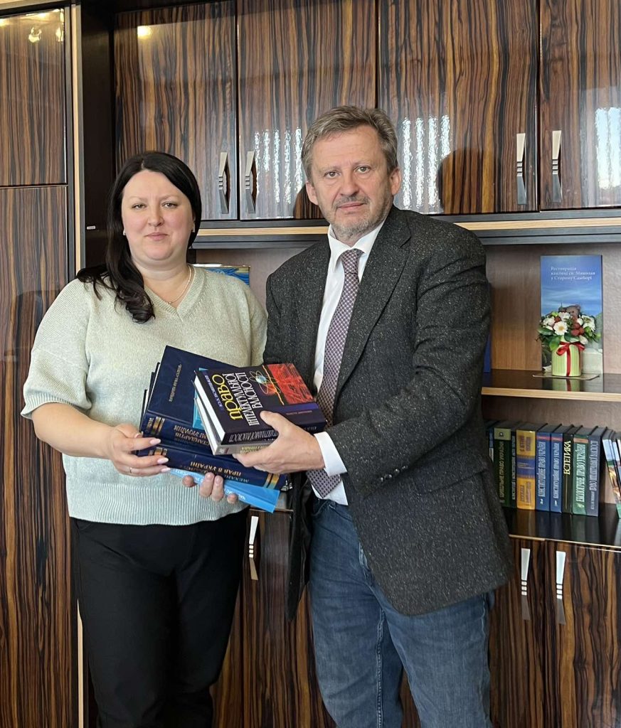 Зі свого боку пані Ольга зазначила, що партнерство з Київським університетом права НАН України сприяє розвитку молоді громади в освітній правничій та інформаційної сфері, формує її інтелектуальний потенціал. Співпраця сприяє реалізації молодіжних ініціатив та громадських проектів. Висловила подяку ректору за подаровані книги, які є дуже цінними для школярів та студентів, що вивчають право, враховуючи ту обставину, що багато молоді зараз навчається дистанційно і потреба у академічних виданнях є дуже великою.
