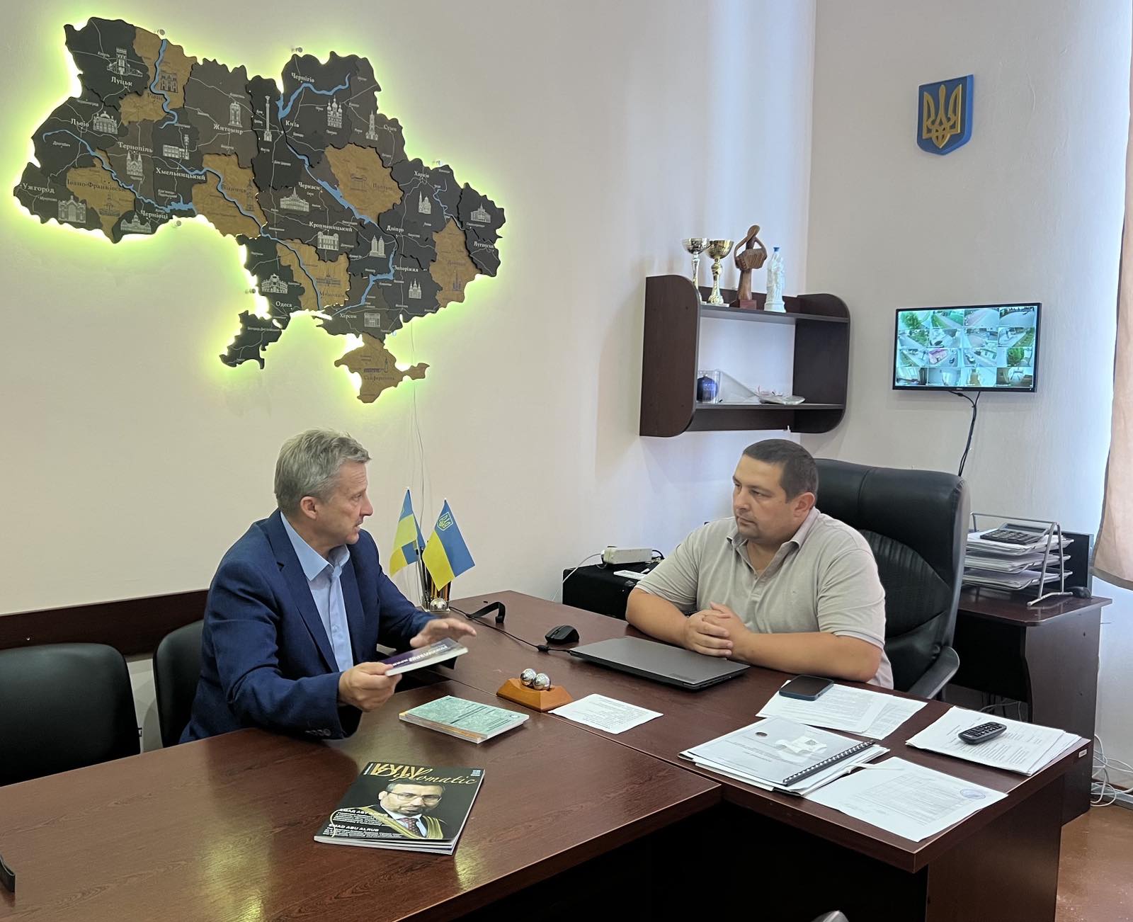 20 серпня ректор КУП НАН України, професор Юрій Бошицький перебуваючи з робочим візитом з питань профорієнтаційної роботи на Стрийщині зустрівся і провів перемовини із новим директором Стрийської гімназії N7 – Ігорем Оляніним.