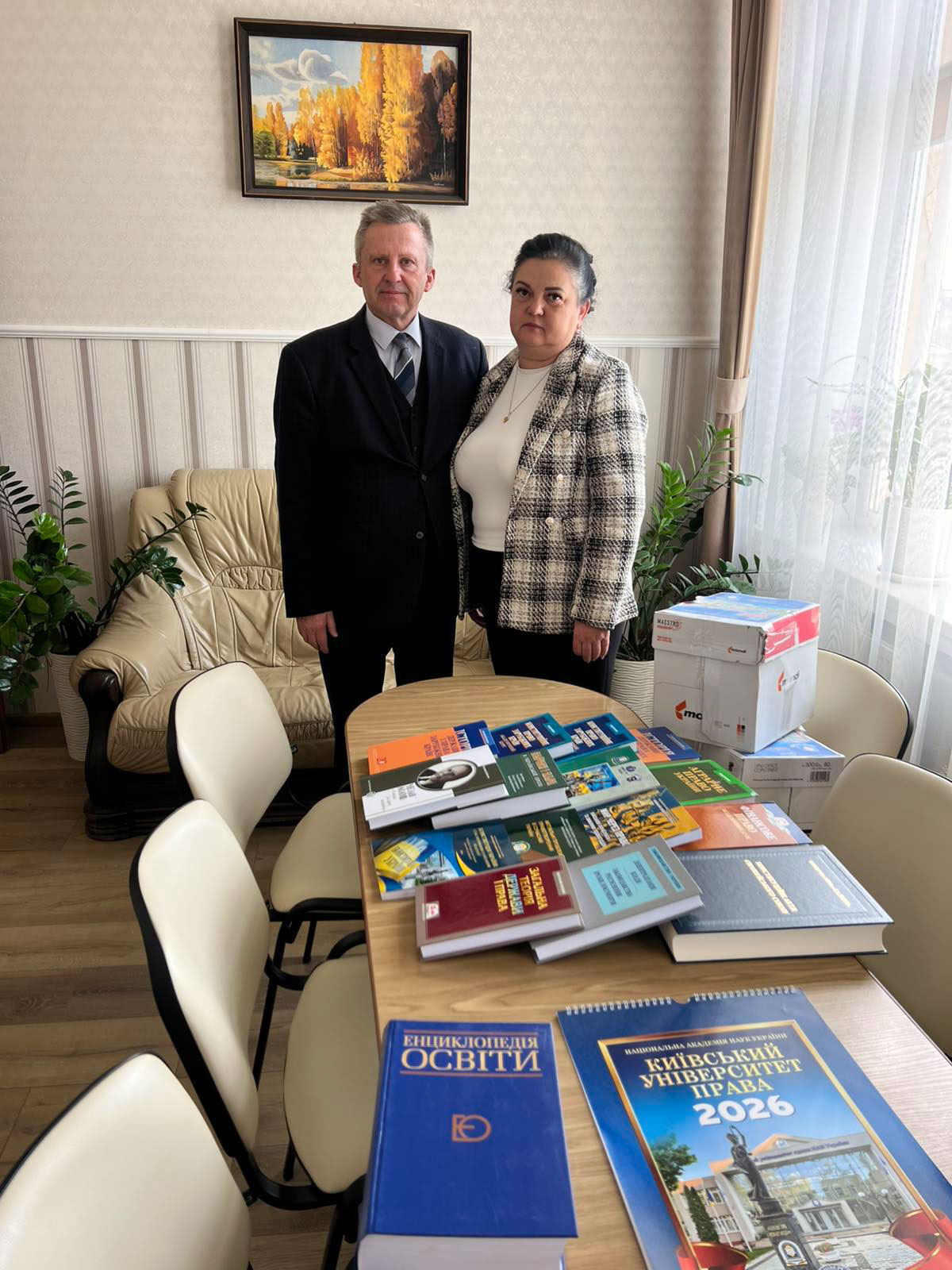 На завершення зустрічі ректор Юрій Бошицький передав бібліотеці ліцею добірку сучасної правничої літератури в межах проєкту «Популяризація юридичної освіти та професії серед учнівської молоді України». Проєкт, який реалізується КУП НАНУ спільно з видавництвами «Юрінком Інтер» та «Юрінком Прес», має на меті поглибити правову обізнаність учнів, ознайомити їх із актуальними надбаннями юридичної науки та виховати високі професійні стандарти майбутніх юристів.