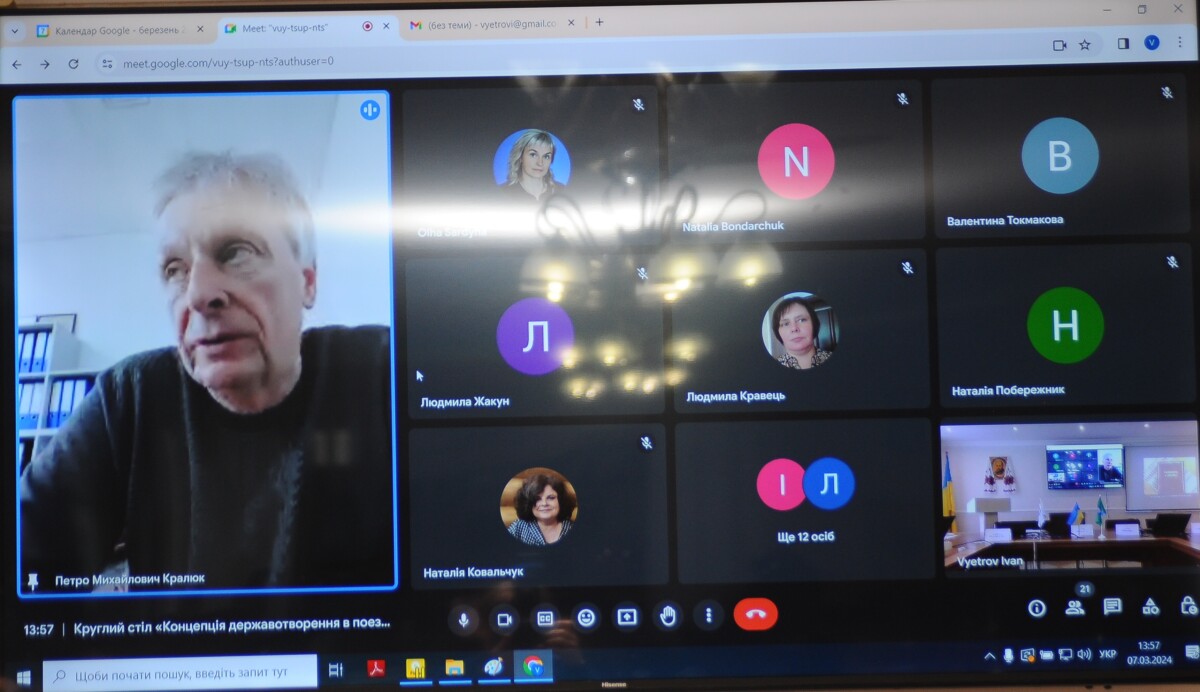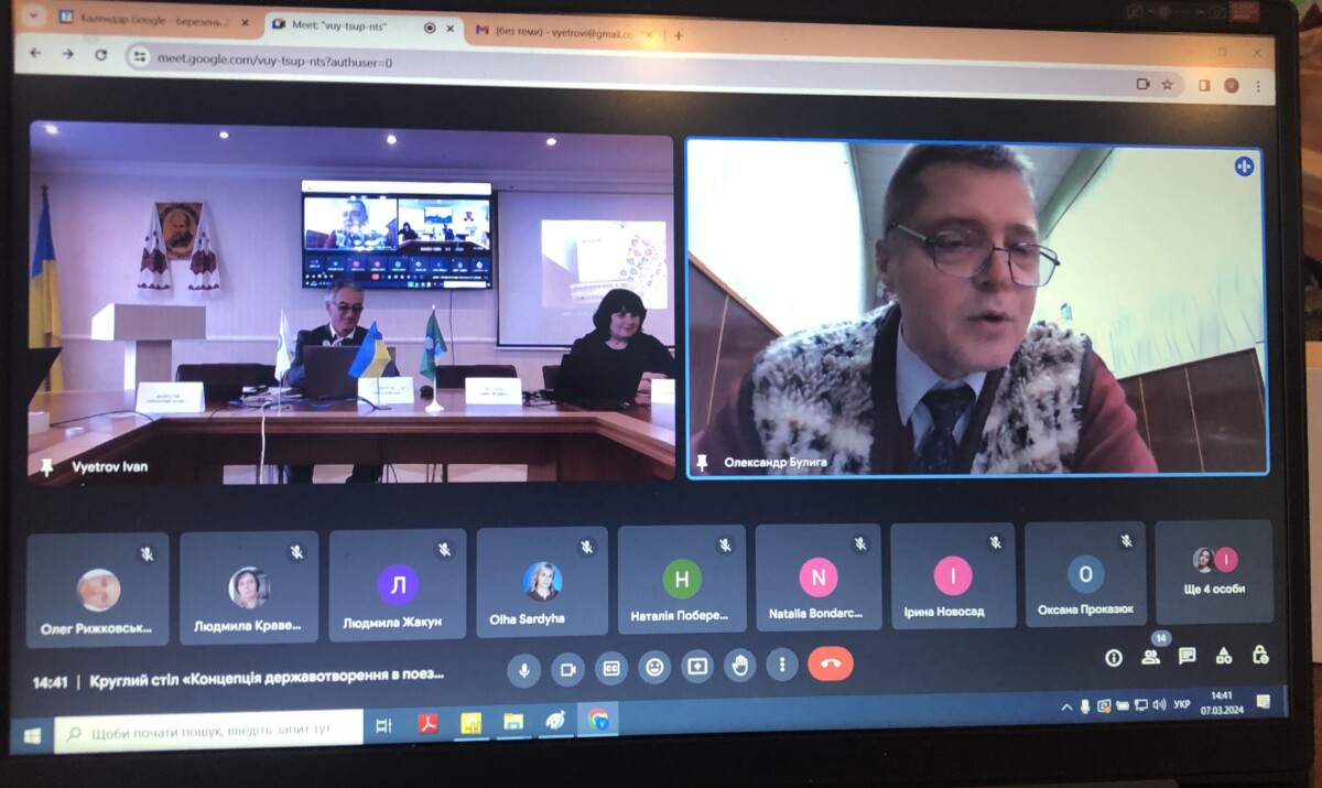 Проникливо і зважено говорили про державотворчість Тараса Шевченка академік НАН України, доктор філологічних наук, директор Інституту літератури НАНУ Микола Жулинський. “Духовна основа нації” – “Шевченкові належить виняткова роль у формуванні української національної ідеології”; доцентка, кандидатка філологічних наук Навчально-наукового інституту права Київського національного університету імені Тараса Шевченка Оксана Данильченко-Черняк («Візії держави та нації у творчості Тараса Шевченка: світова ретроспектива»); доктор філософських наук, професор, завідувач кафедри теорії та історії держави і права НУОА, письменник Петро Кралюк («Шевченко про стосунки українців і поляків»); кандидатка педагогічних наук, доцентка кафедри української мови та культури факультету лінгвістики та соціальних комунікацій Національного авіаційного університету Оксана Приходько («Шевченкіана Михайла Борейка»);