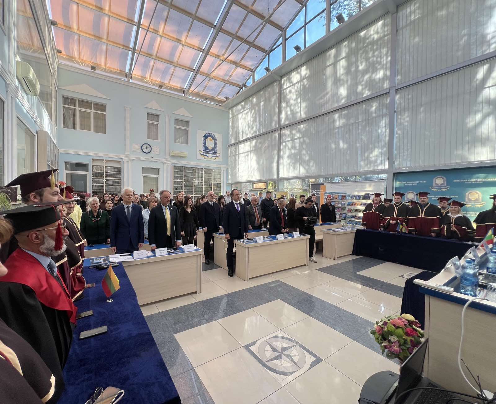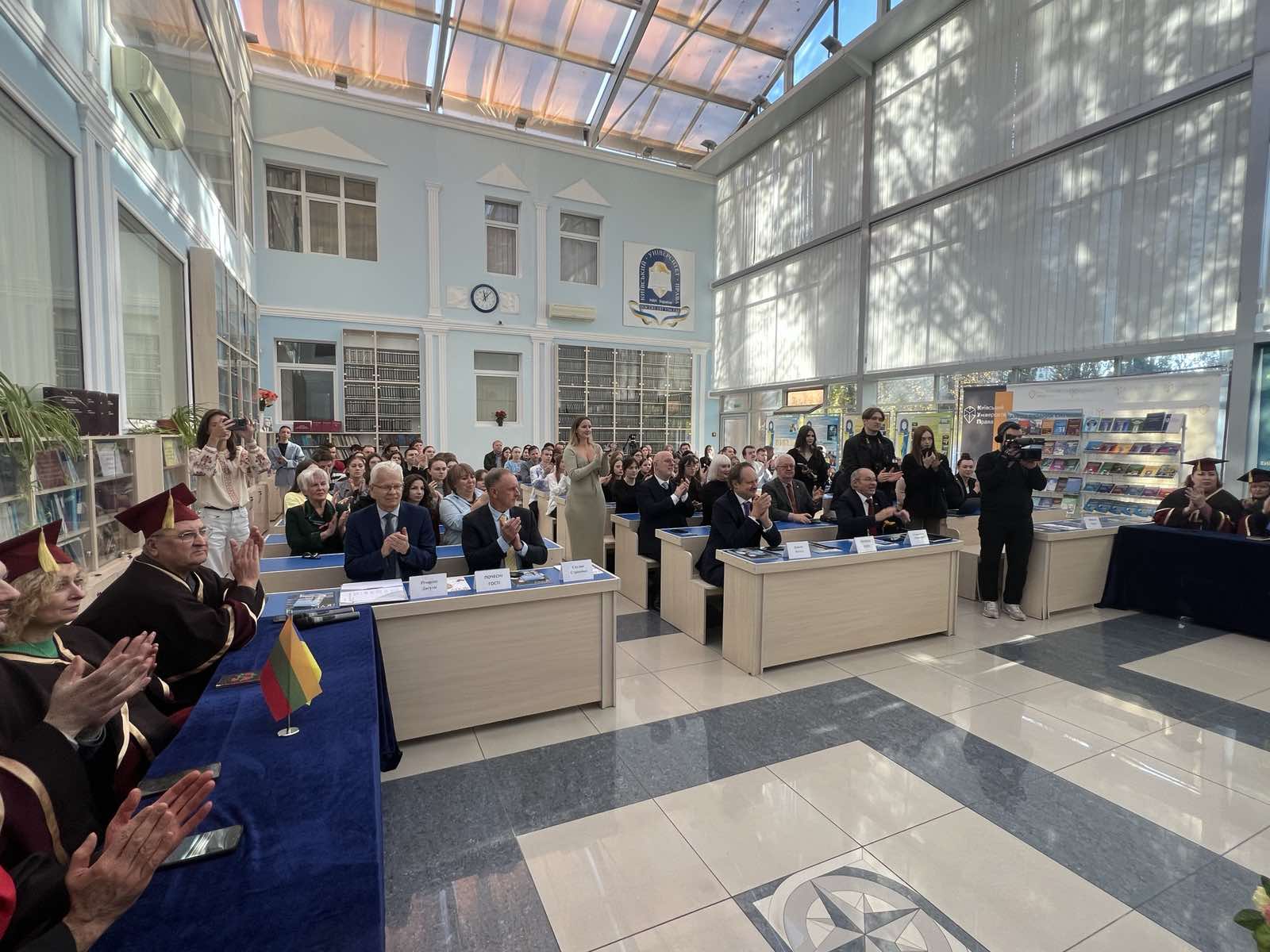 В урочистому засідання взяла участь Надзвичайний і Повноважний Посол Литовської Республіки в Україні пані Інга Станіте-Толочкене, яка у своєму виступі висловила щиру вдячність керівництву університету за запрошення та наголосила, що Литва і надалі залишатиметься відданим союзником України, підтримуючи її у боротьбі за відновлення державного суверенітету і встановлення миру.