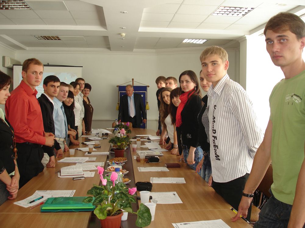 У залі засідань ректорату університету відбулося офіційне обговорення основних аспектів передвиборчої кампанії студентського самоврядування, які співпали за датою в обох університетах. Під час обговорення студенти Черкаського університету наголосили на питанні роботи студентського самоврядування та його керівних органів, ознайомили з моделлю студентського самоврядування даного університету. Ми мали змогу ознайомитися з Положенням про Студентську раду Черкаського Національного університету, з Положенням про виборчу комісію, а також зі структурою студентського самоврядування Черкаського Національного університету. До речі, в ЧНУ на денній формі навчання навчається біля 7500 студентів, але третій рік поспіль на посаду голови Студентської ради ЧНУ балотується лише один кандидат. Радісно чути, що нинішній голова Студентської ради ЧНУ має такий авторитет серед студентів, але гірко констатувати той факт, що студенти побоюються брати на себе додаткову відповідальність.