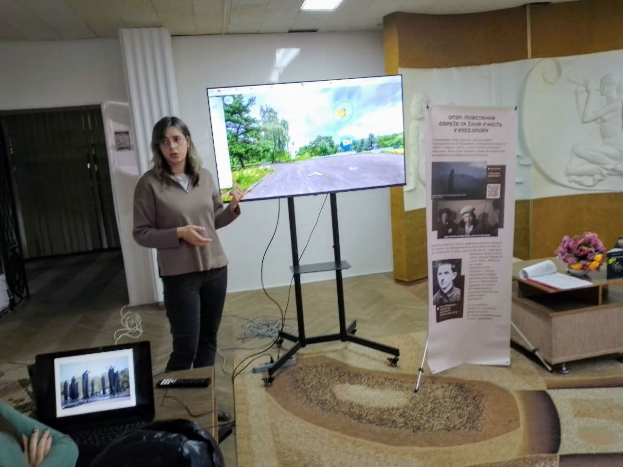 Відтак, докторка філософії, проєктна менеджерка ГО «Мнемоніка» Катерина Попова розкрила тему Голокосту на Рівненщині та продемонструвала новий 3D-тур урочищем Сосонки.
