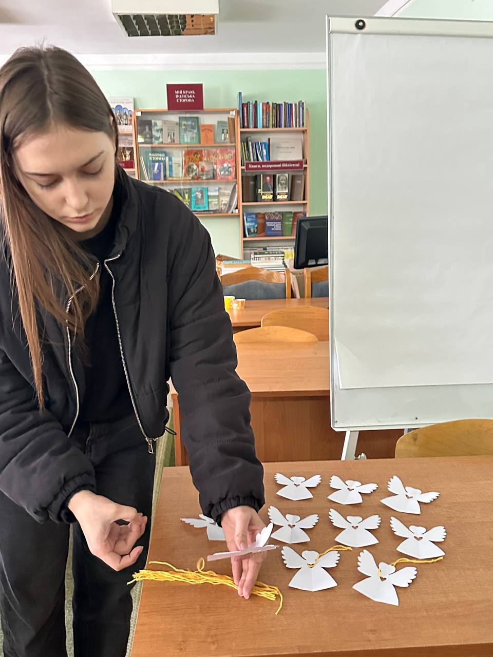 Майстер-клас із виготовлення паперових символів небесного воїнства був організований заступником директора РІ КУП НАНУ з виховної та профорієнтаційної роботи Ганною Дикун та завідувачем бібліотеки Ольгою Дем’янчук. Створюючи ангелів із паперу та ниток, майбутні правники не лише вшанували перших захисників сучасної України, а й ствердили важливість історичної пам’яті в розбудові правової держави. Кожна власноруч зроблена фігурка стала для молоді особистою обіцянкою продовжувати справу розбудови чесної країни та символом незламної гідності.