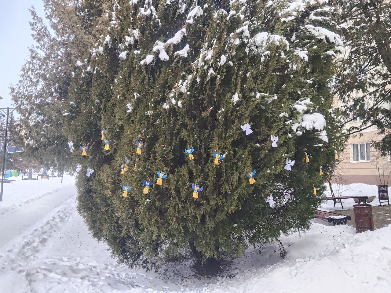 На завершення заходу студенти прикрасили білими ангелами дерева поблизу навчального закладу, перетворивши цей жест на живе нагадування про відповідальність кожного перед тими, хто пожертвував собою заради нашого майбутнього.