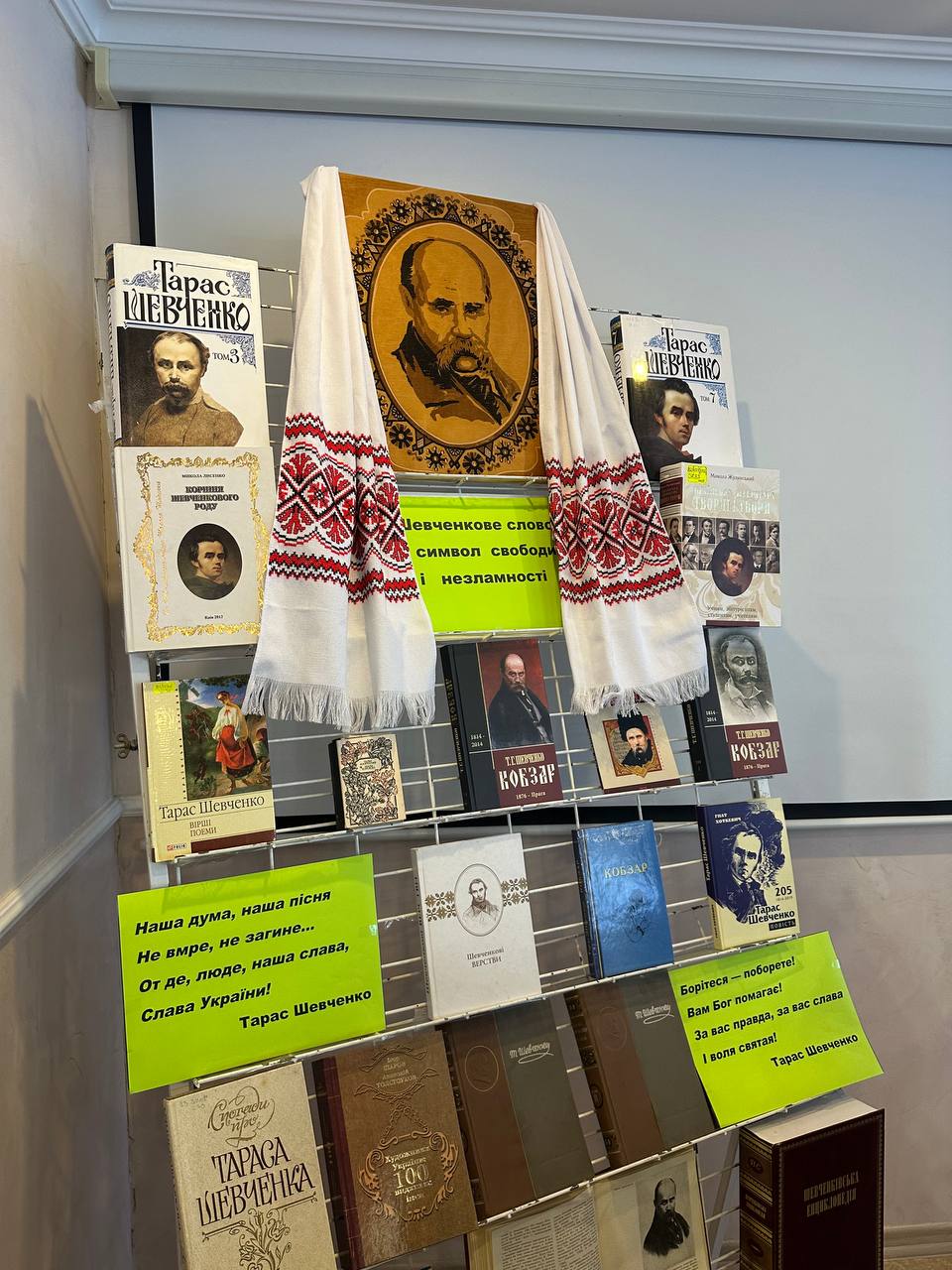 В актовій залі РІ КУП НАНУ з нагоди дня народження великого українського поета, художника і мислителя Тараса Шевченка розгорнута книжкова виставка, присвячена його життю і творчості. В експозиції представлені книги, що поєднують історію і сучасність, наукові дослідження, рідкісні видання та ілюстровані матеріали, що розкривають багатогранність творчості поета та його вплив на розвиток національної культури й свідомості.