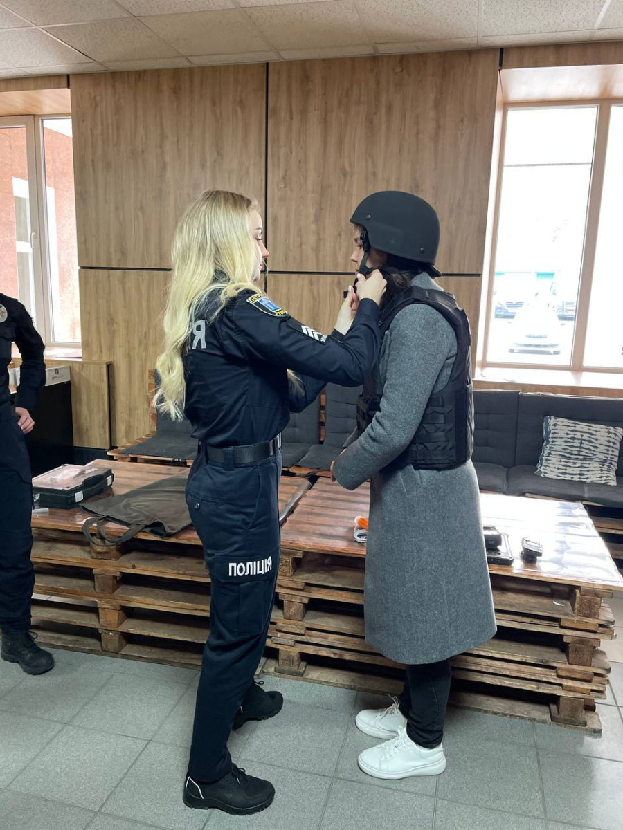 Також Іванна Бойківська провела для студентів екскурсію територією управління і розповіла багато цікавого. Крім того, ознайомила із оснащенням патрульного. Студенти мали змогу приміряти засоби захисту.