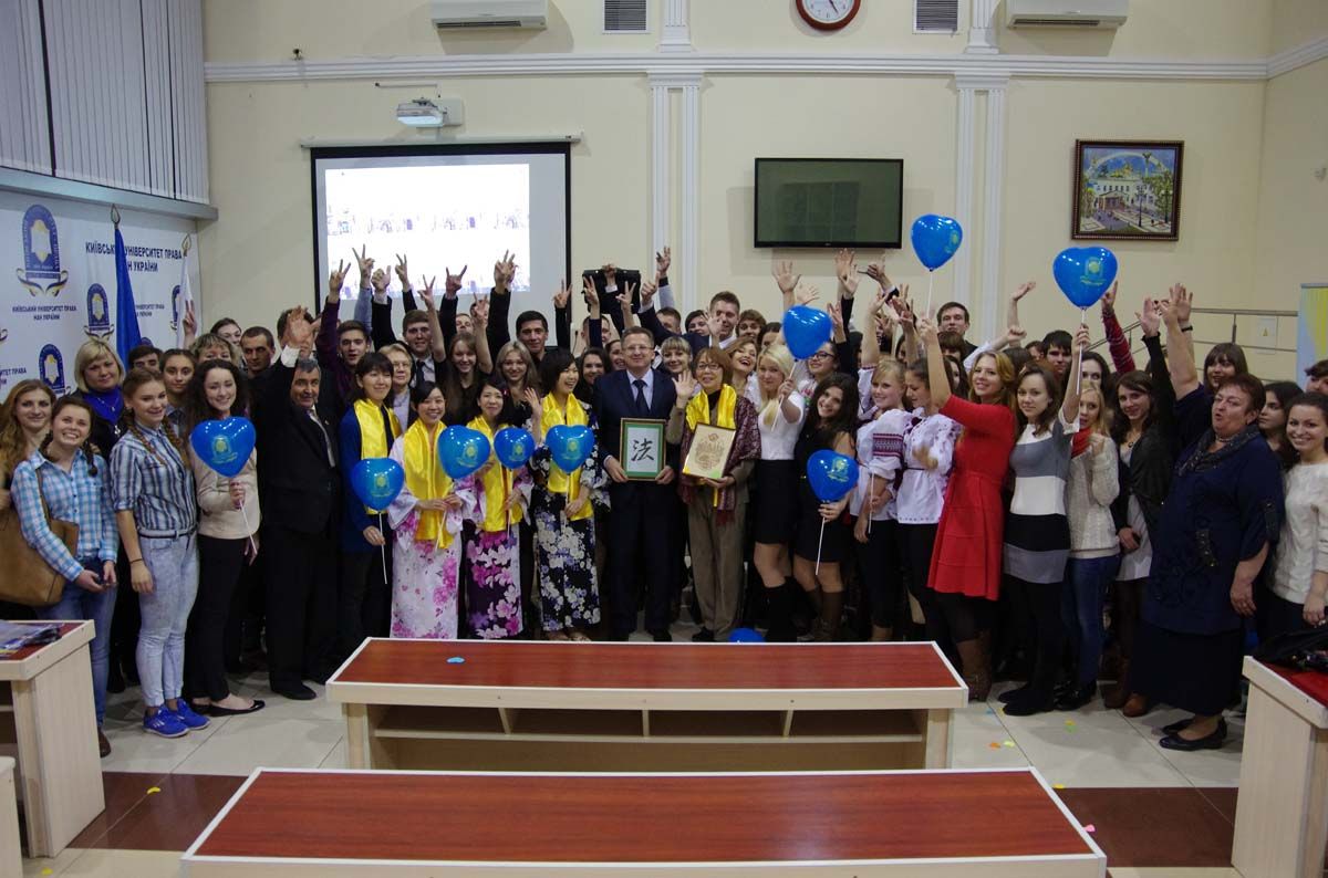 Керівник волонтерської групи Набуко Оморі у знак великої поваги до керівника, який особисто патронує соціально-благодійні програм «Дитина має право на життя», «Передай тепло своє руки маленькій дитині», ректорові Юрію Ладиславовичу подарувала картину із зображенням ієрогліфа «Успіх права»