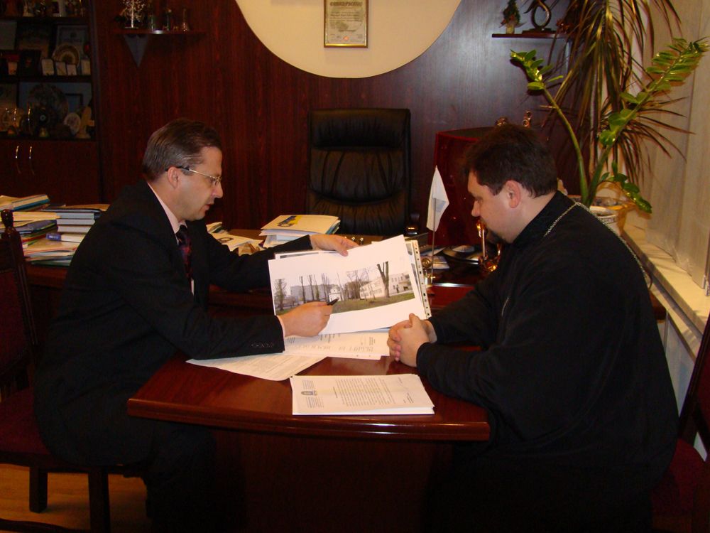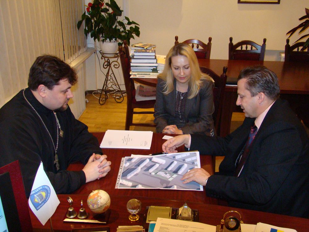 Ю. Бошицьким під час обговорення проекту будівництва храму на території університету.