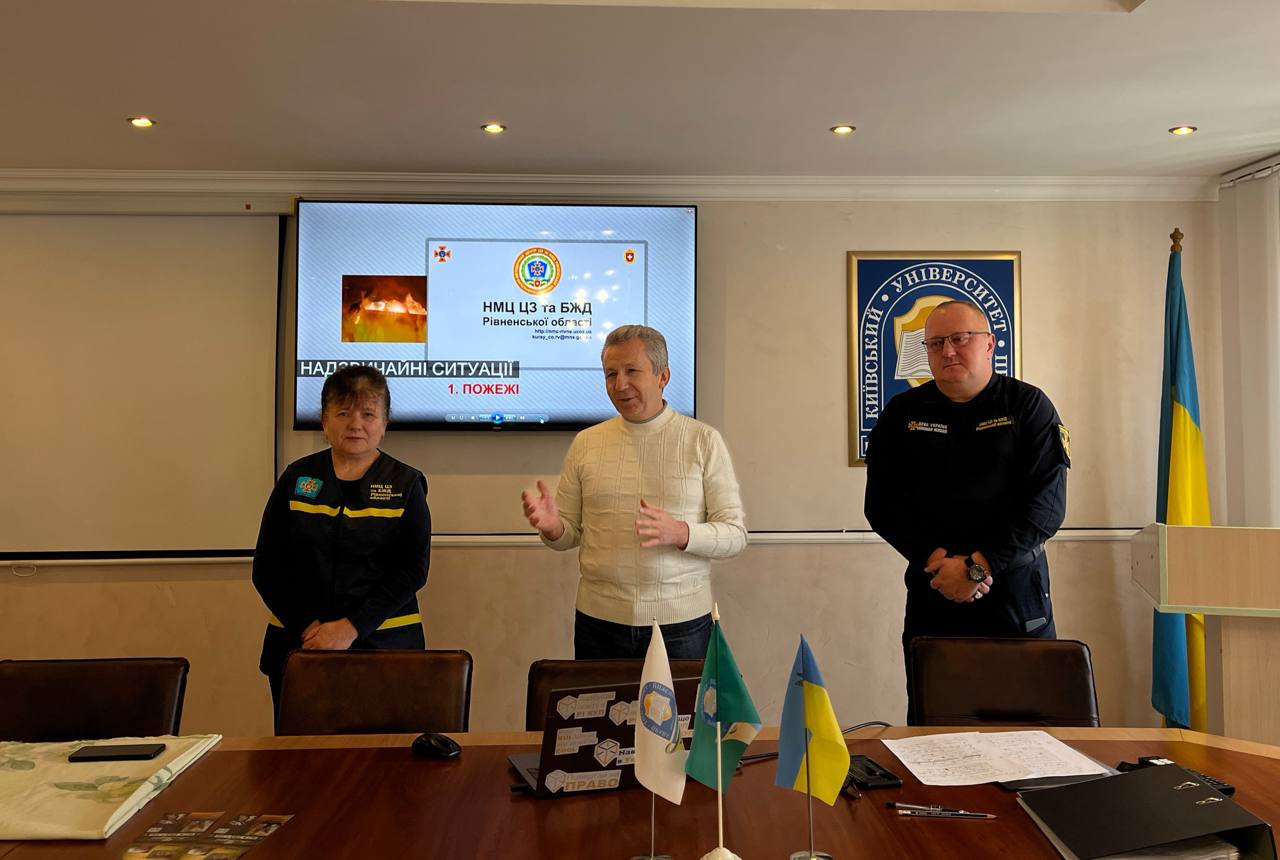 Зустріч відкрив проректор КУП НАНУ з перспективного розвитку Рівненського інституту Петро Вахнюк. Ця зустріч стала плідним майданчиком для обміну інформацією з важливих питань, пов’язаних із попередженням надзвичайних ситуацій, пожежної безпеки, правилами поведінки в умовах воєнних загроз, основами першої допомоги та безпеки життєдіяльності.