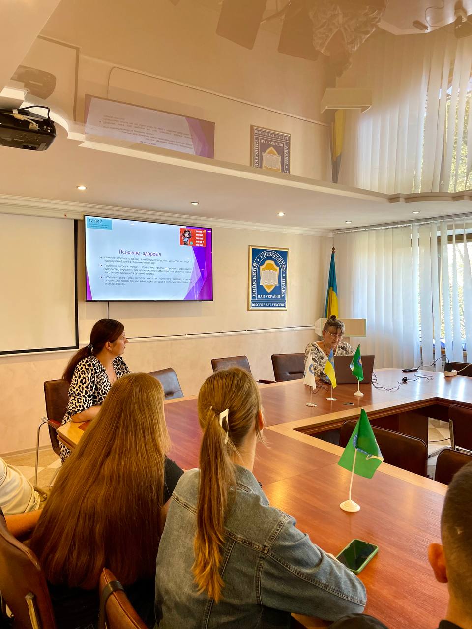 Вони відбулися в рамках Всеукраїнської програми «Ти як?», яку ініціювала перша леді України Олена Зеленська за підтримки USAID, ВООЗ, Координаційного центру з психічного здоров’я Кабінету Міністрів України. Завідувач кафедри загальнотеоретичних правових та гуманітарних дисциплін доктор соціологічних наук Олеся Кириленко ознайомила здобувачів вищої освіти з метою, змістом та інтернет-ресурсами означеної програми. Їм була запропонована інформація про причини і прояви психічних розладів під час війни, про шляхи їх подолання за допомогою лікарів, психологів, психологічних гарячих ліній, ауто-психо-регулятивних практик. Такі навички, на переконання організаторів, мають допомогти студентській молоді посилити психологічну стійкість, оволодіти різноманітними інструментами управління стресами в умовах підвищеної соціально-психологічної напруги, зумовленої воєнним станом.