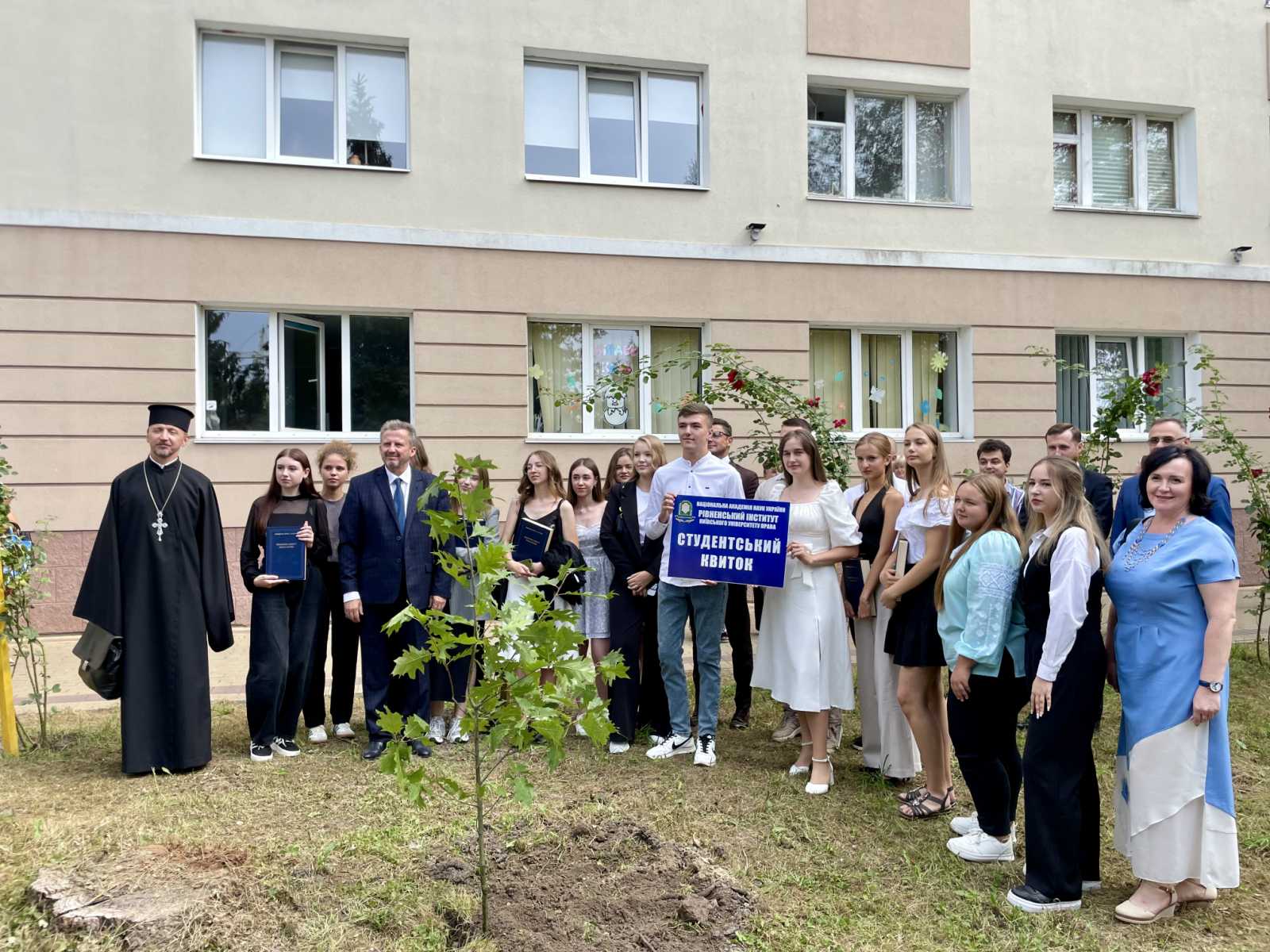 Святкова церемонія, ведучими якої були голова студентського парламенту Владислава Стецюк та її заступник Данило Філюк, завершилася виконанням Державного гімну України, а також традиційною акцією — біля інституту висадили садженець червоного дуба, що є рідкісною надміцною породою, яка знаменує собою стійкість та витривалість. І перемогу за будь-яких умов.