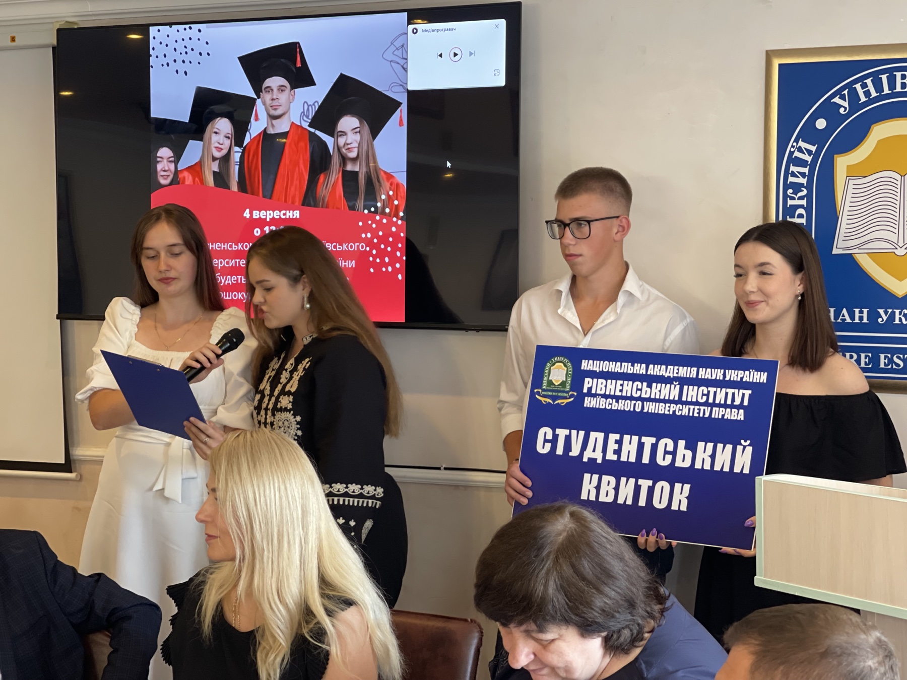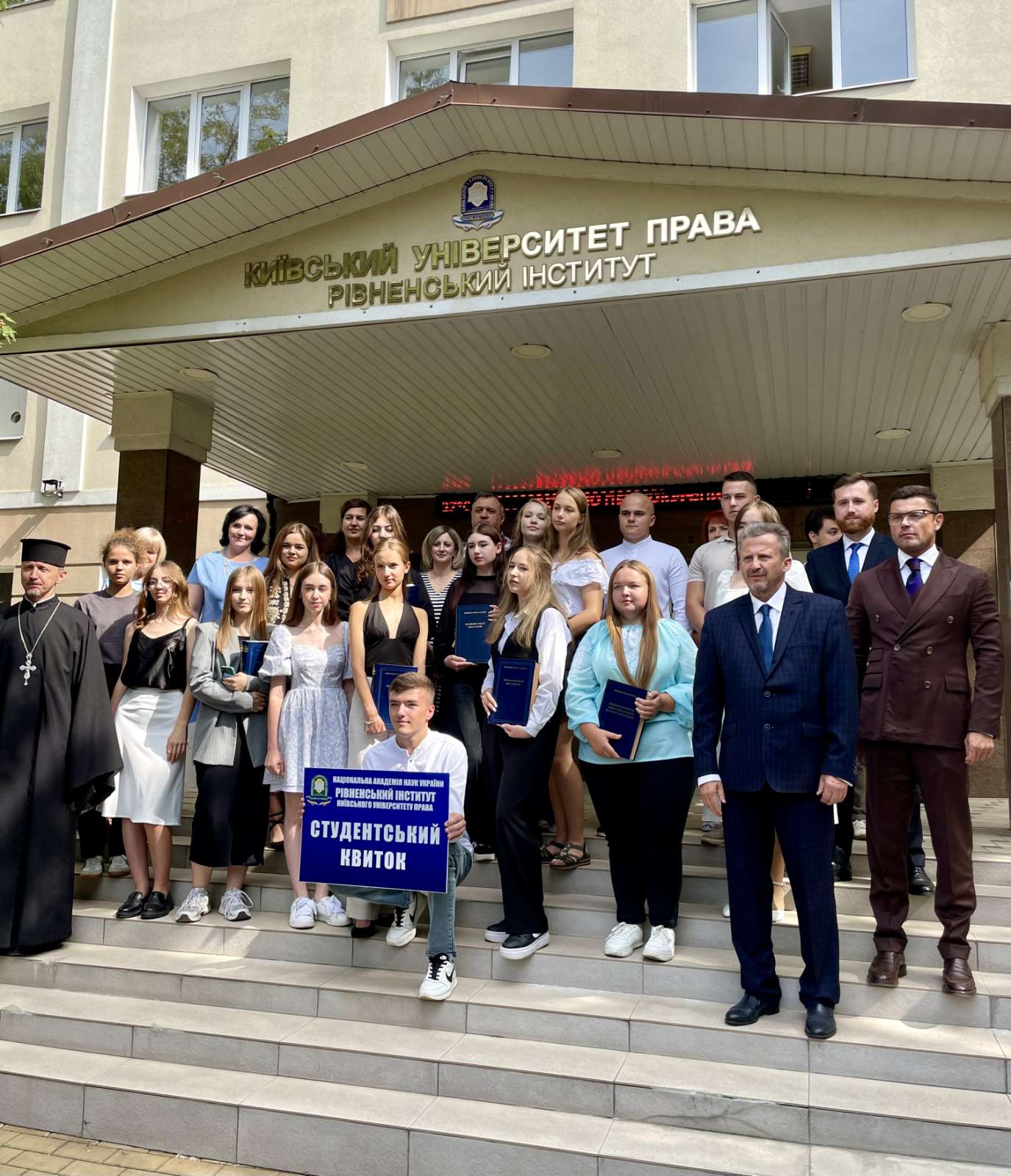 Зворушливі привітання першокурсникам адресували як представники базового закладу, так і почесні гості, зокрема заступник голови Рівненської обласної ради Сергій Свисталюк, керівниця Комунальної установи «Центр професійного розвитку педагогічних працівників» Рівненської міської ради Мирослава Жовтан, заступниця директора з наукової роботи Рівненського обласного краєзнавчого музею Оксана Яремчук, регіональна координаторка Західного міжрегіонального управління Міністерства юстиції Оксана Сальчук, випускник інституту адвокат Денис Михалевич, священник православної церкви України о. Володимир та ін.