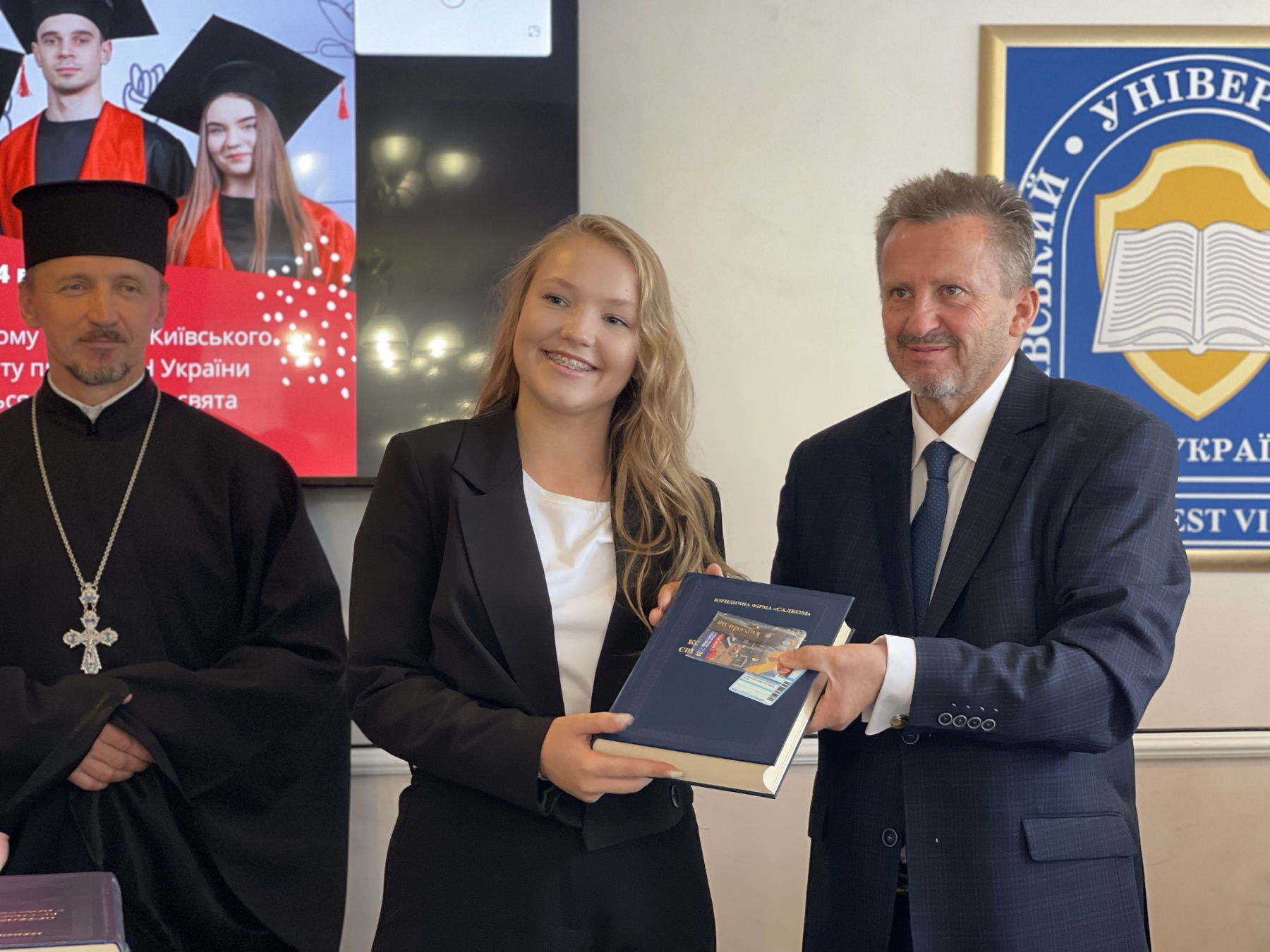Особливо трепетно промовляли першокурсники слова «Клятви першокурсника», яку виголосили Анастасія Тарасенко та Дарія Блищик, а представники студентського парламенту Олена Ткачук та Юрій Кундицький вручили їм символічний студентський квиток. А персональні студентські квитки першокурсники отримали з рук ректора КУП НАНУ Юрія Бошицького, який також вручив їм книги та цінні подарунки від партнерів закладу, зокрема комерційного банку COMINBANK.