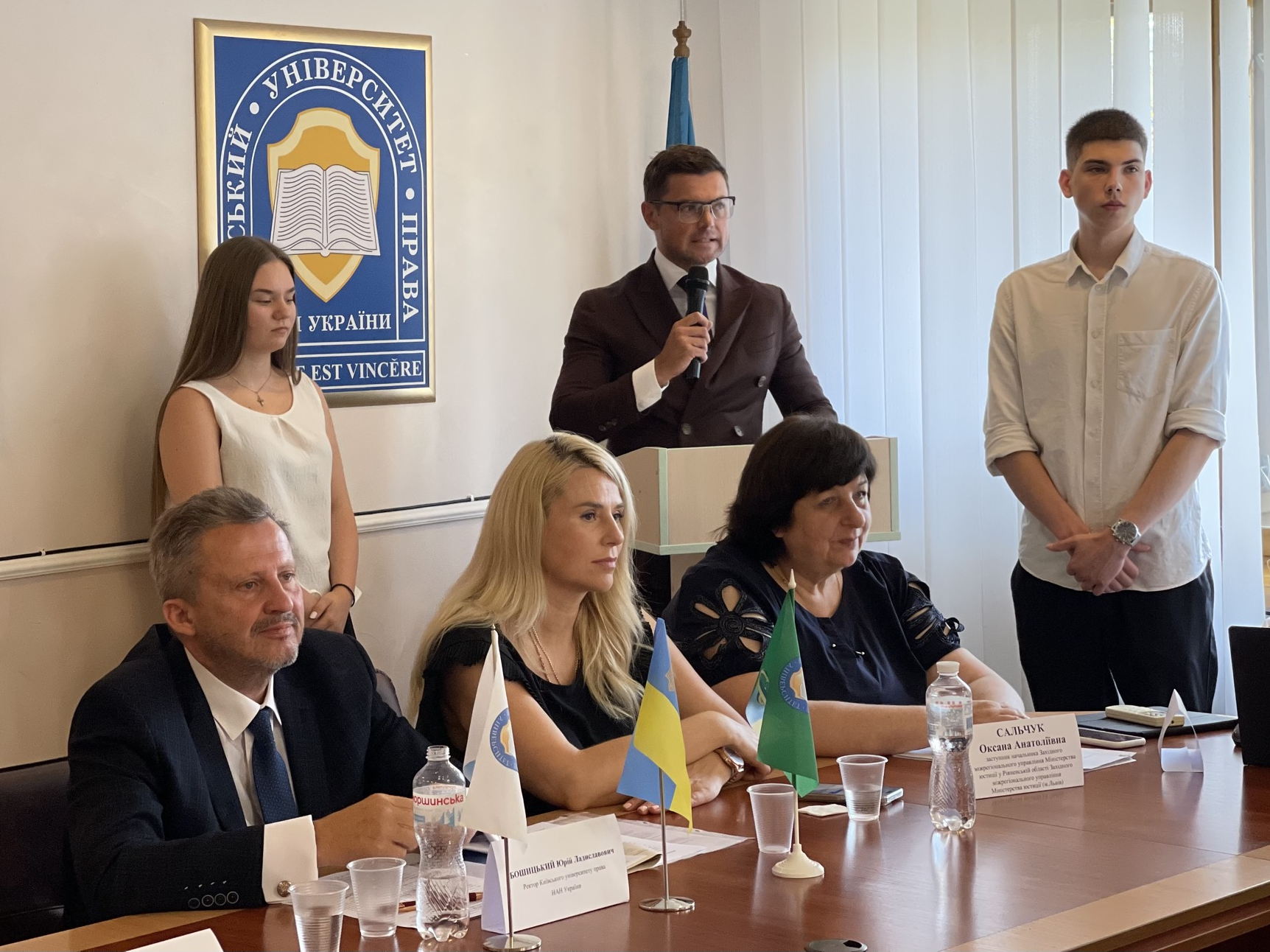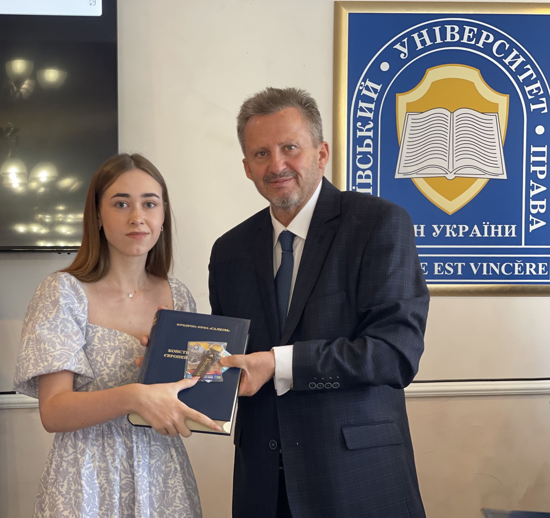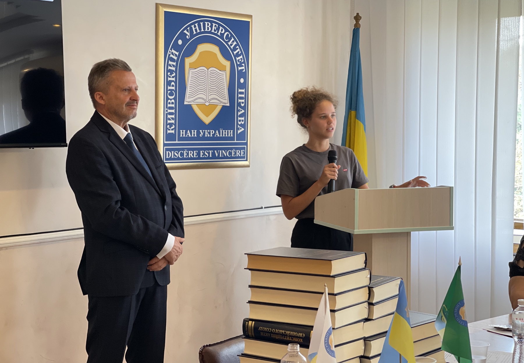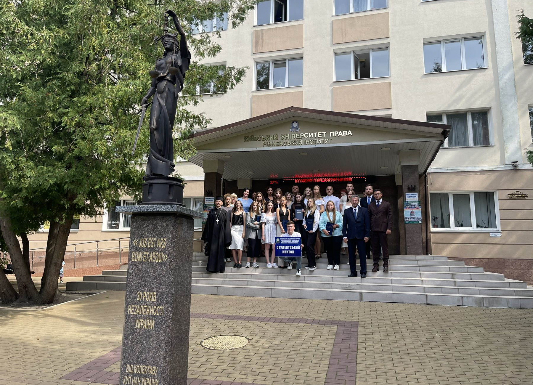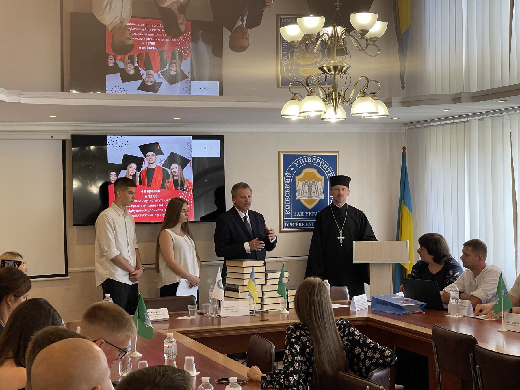 Відкрив церемонію посвяти ректор Київського університету права Національної академії наук України, професор, заслужений юрист України Юрій Бошицький, який наголосив на тому, що повномасштабне російське вторгнення для всіх українців стало найбільшим викликом від початку незалежності нашої держави, що спричинило нові уявлення про масштаби порушення прав людини, нанесення шкоди здоров’ю та майну, позбавлення життя, волі людини. Ректор запропонував вшанувати пам’ять усіх, хто поклав своє життя за майбутню перемогу України, а серед них є наші студенти та випускники Микола Лазарчук та Владислав Боровик, хвилиною мовчання.