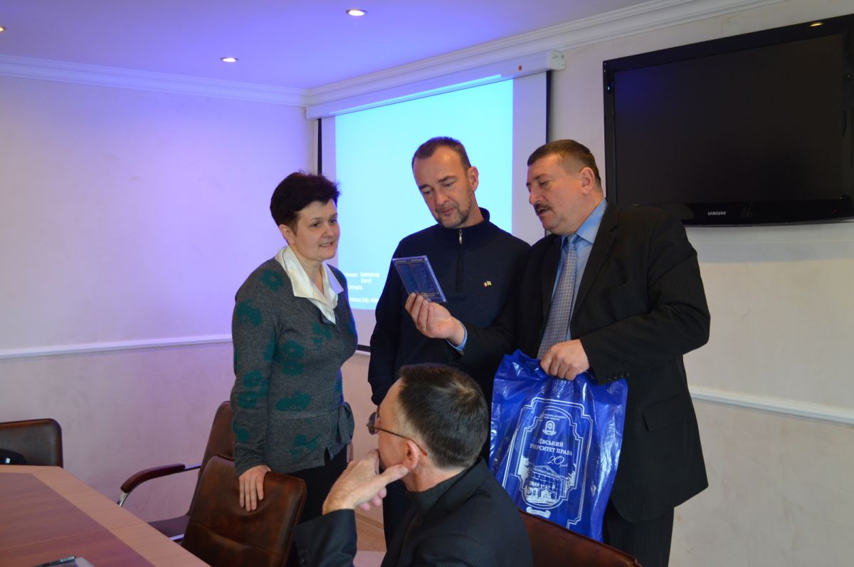 Керуючий справами РІ КУП НАНУ Володимир Леонович Якимчук подякував гостям за їхню небайдужість, побажав реалізації творчих задумів, а режисеру вручив цінні подарунки. Неформальне спілкування зі студентами було продовжене в аудиторії героїв Небесної сотні, де панує особлива атмосфера довіри.