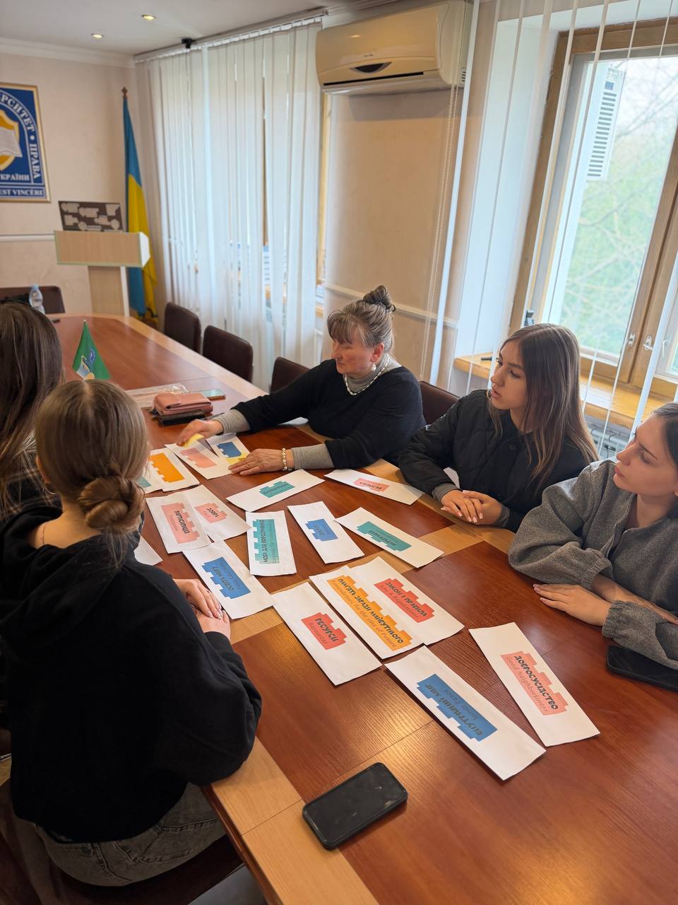 Після обговорення теоретичного блоку учасники перейшли до практичної частини ‒ командної роботи над формуванням власних моделей гуманістичних принципів. Студенти не лише працювали із запропонованими матеріалами, а й доповнювали їх власними ідеями, демонструючи критичне мислення та здатність виходити за межі заданих шаблонів.