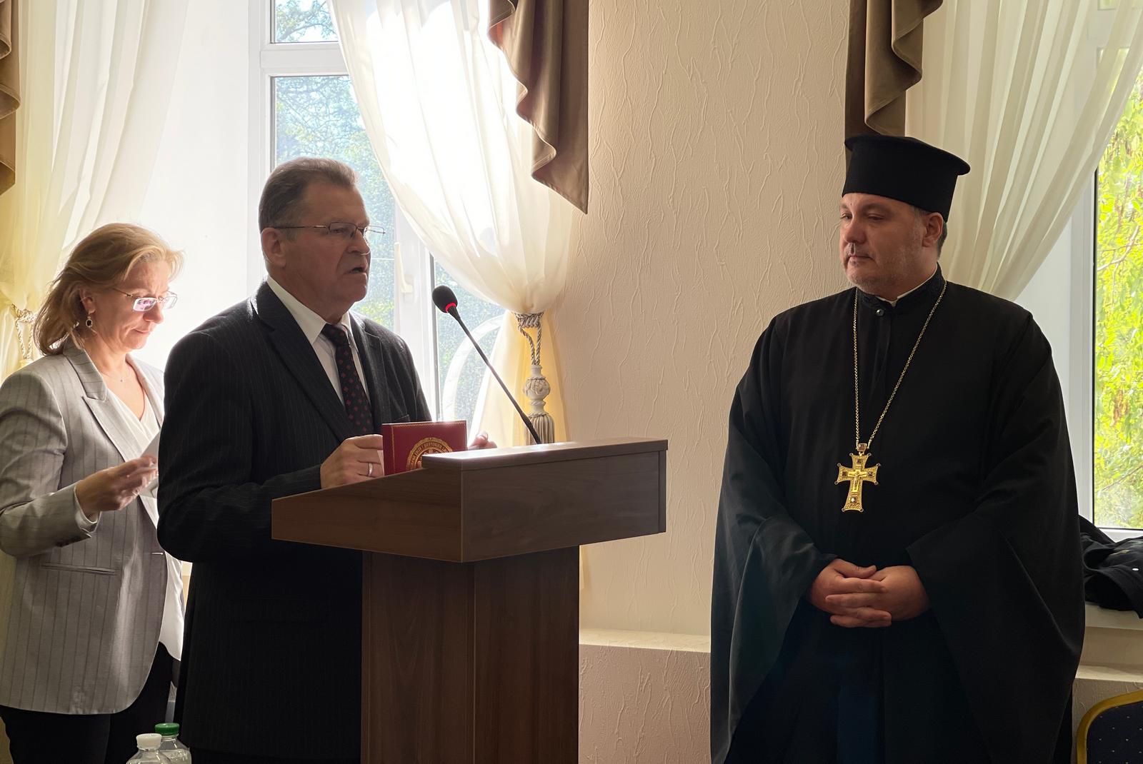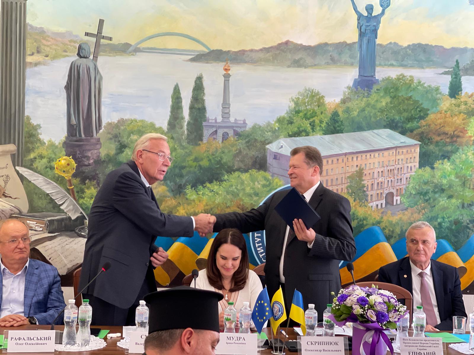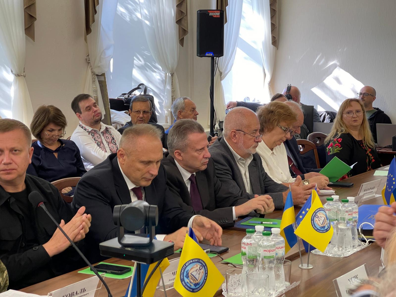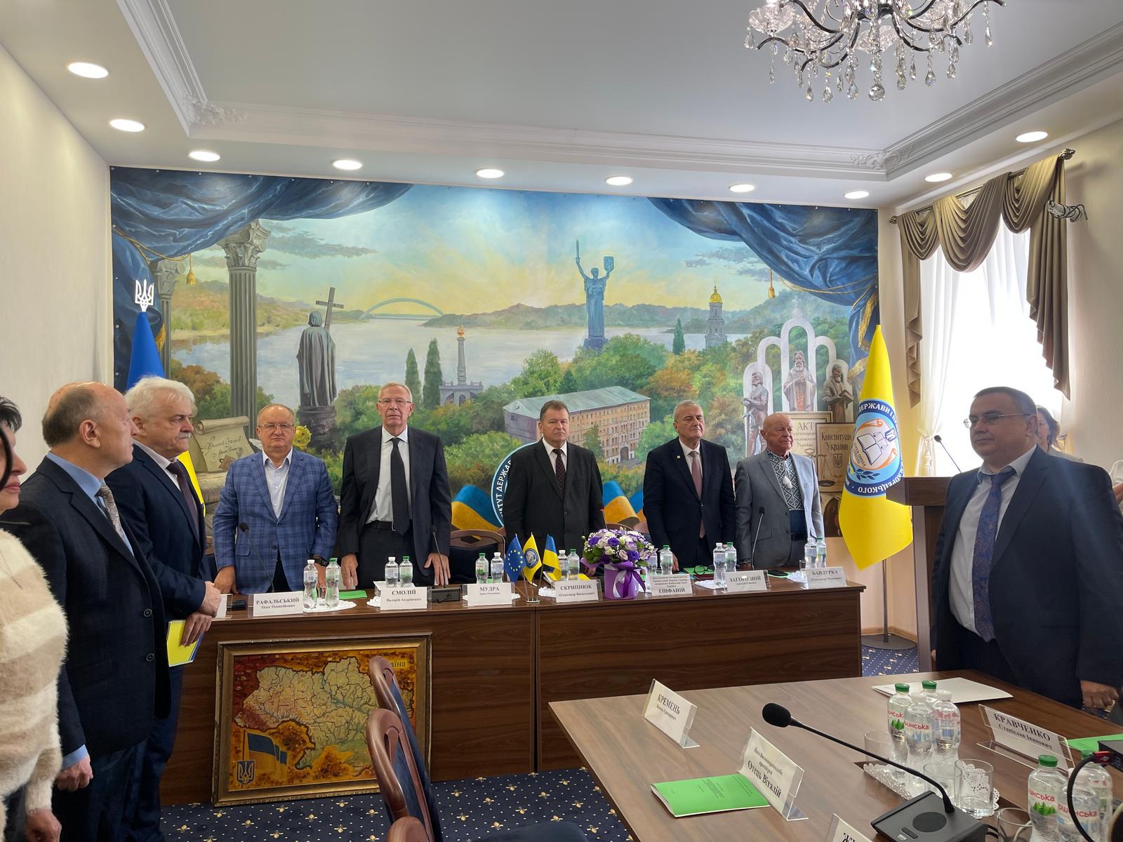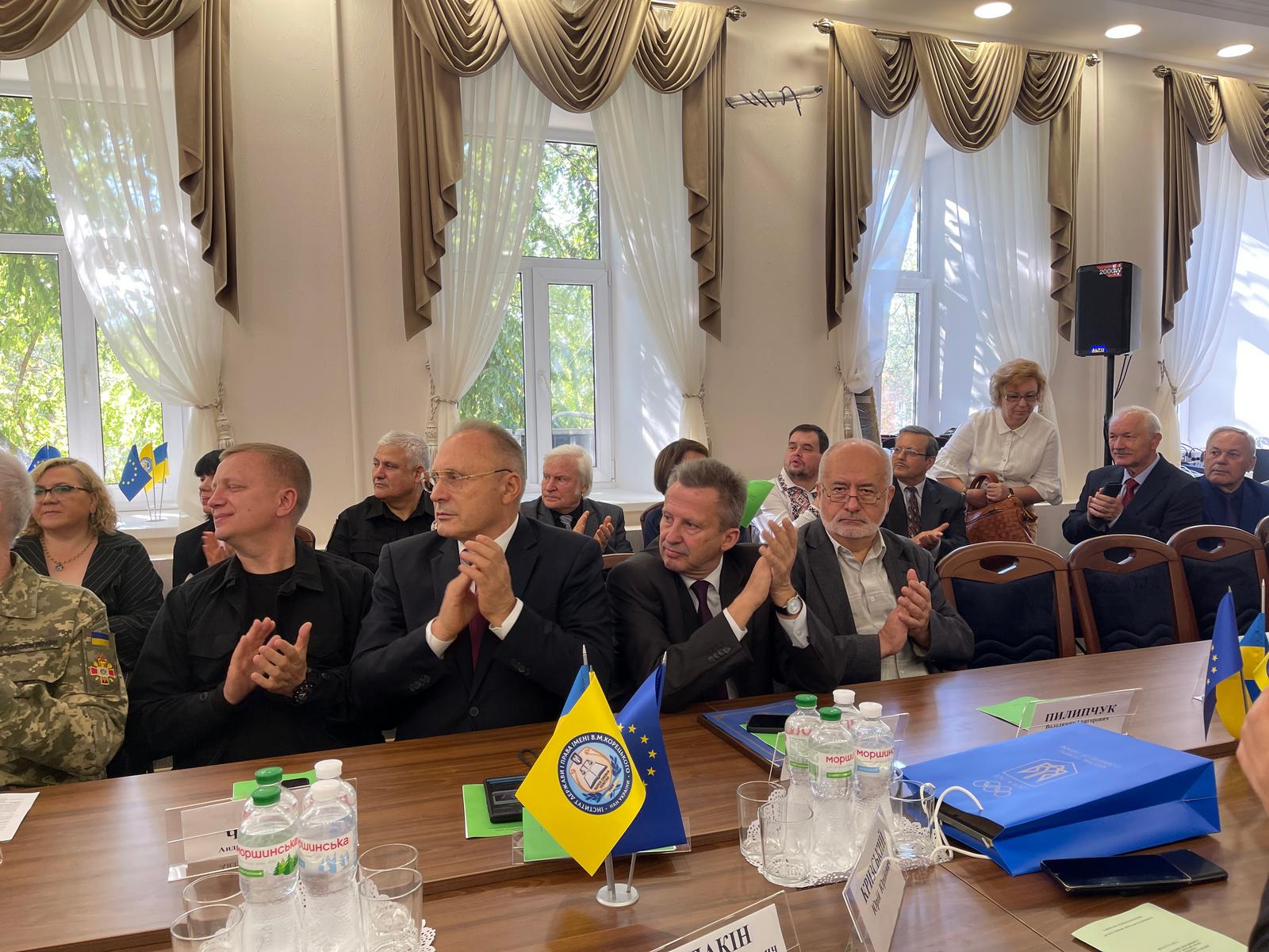 Теплі вітальні слова з нагоди 75-річчя Інституту держави і права імені В.М. Корецького Національної академії наук України пролунали також від професора, Заслуженого юриста України Юрія Ладиславовича Бошицького ‒ ректора Київського університету права НАН України. Юрій Ладиславович у своєму виступі наголосив на органічних партнерських зв’язках, які поєднують обидві установи, що логічно пояснюється тим фактом, що саме Інститут держави і права імені В.М. Корецького НАН України в 1995 році виступив засновником Вищої школи права при Інституті держави і права ім. В.М. Корецького НАН України, правонаступником якої є Київський університет права НАН України.
