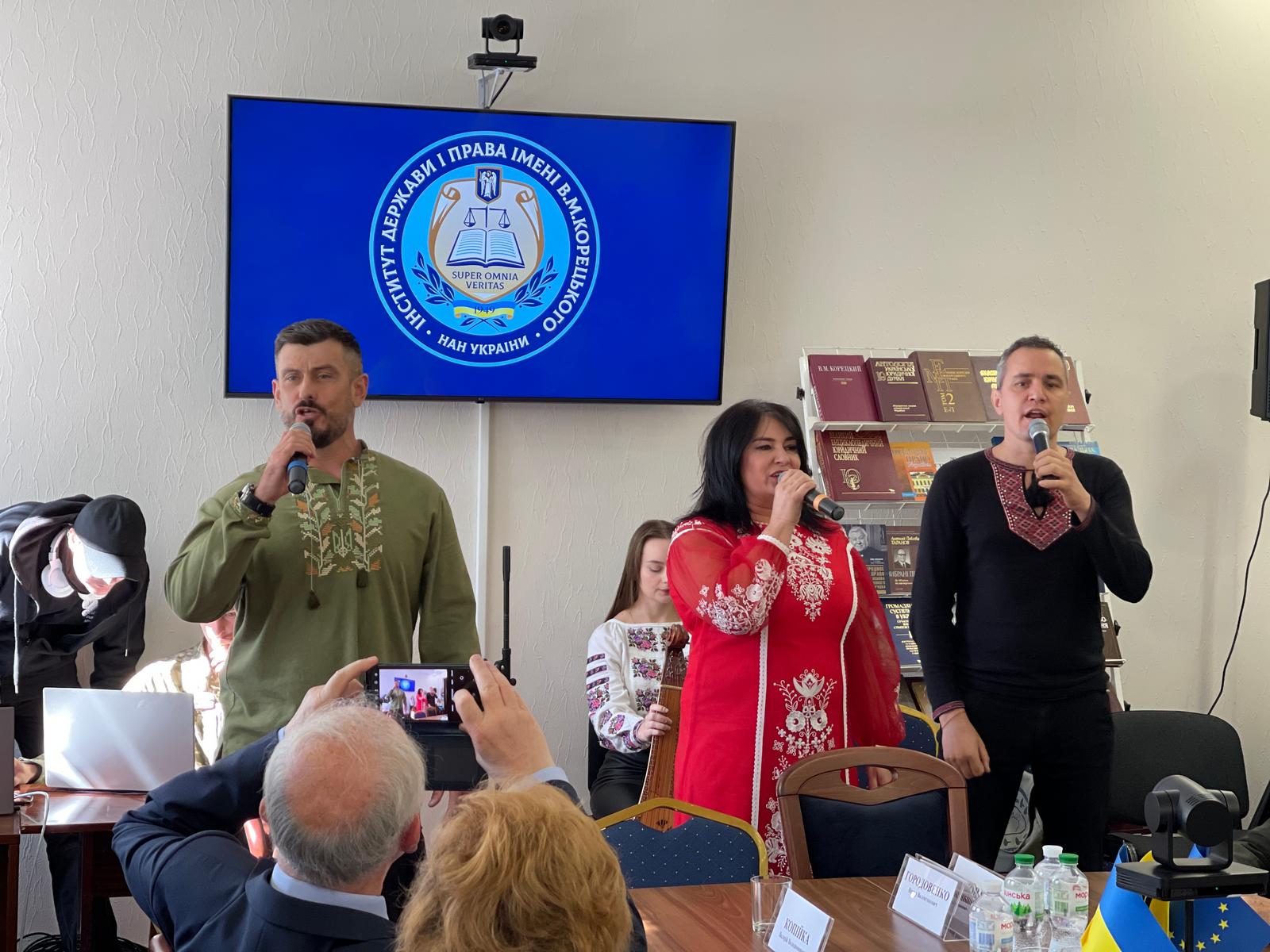 Розпочався захід з привітання гостям урочистого засідання директора Інституту держави і права імені В.М. Корецького НАН України, доктора юридичних наук, професора, академіка НАПрН України Скрипнюка Олександра Васильовича, який у своєму виступі привітав поважних гостей та співробітників Інституту та розповів про основні етапи зародження, створення та функціонування Інституту держави і права ім. В.М. Корецького Національної академії наук України, що є провідною науково-дослідною установою юридичного профілю в Україні. Доповідач не оминув у своєму виступі також і пріоритетні напрями фундаментальних досліджень Інституту, такі як проблеми державотворення і правотворення в Україні: теорія, історія, практика; правові проблеми демократизації суспільних відносин і формування громадянського суспільства та утвердження і реалізація прав та свобод людини; теоретичні і прикладні проблеми розвитку правової системи України; теоретичні і практичні проблеми реалізації Конституції та законодавства України; Україна в системі сучасного міжнародного правопорядку та Європейської інтеграції: теорія і практика; проблеми енциклопедичних юридичних досліджень, філософії і соціології права.