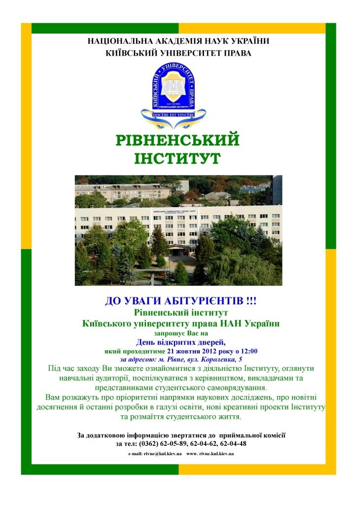 УВАГА! 21 жовтня 2012 р. в Рівненському інституті КУП НАН України відбудеться День відкритих дверей !