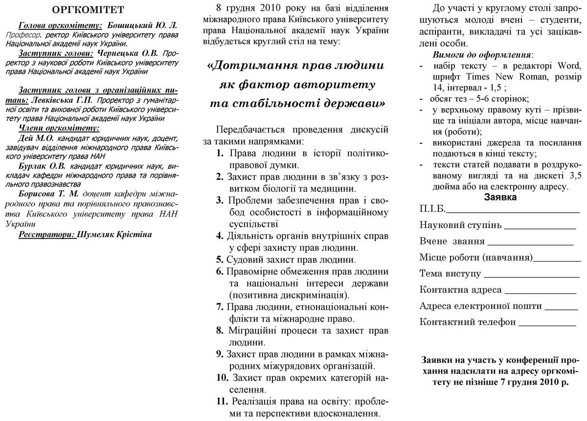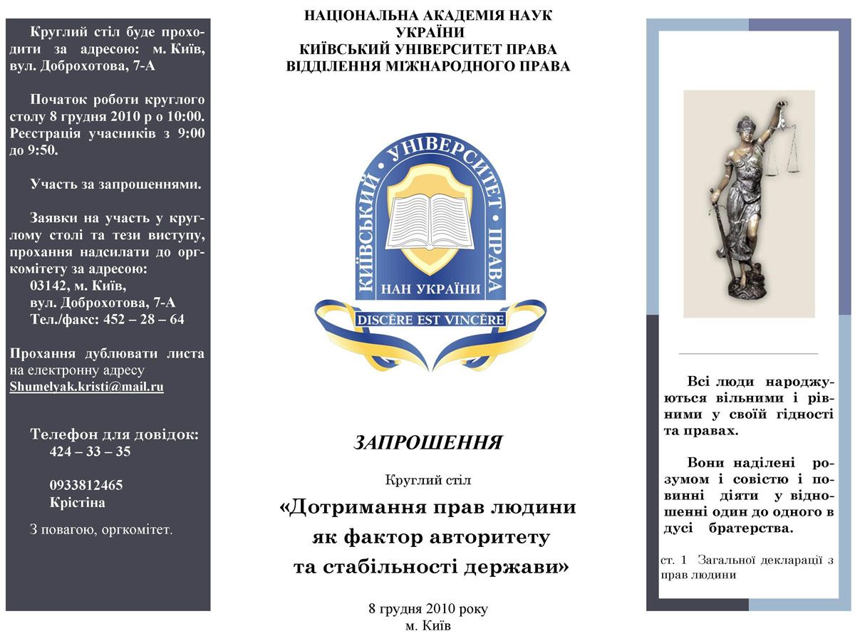 В КУП НАНУ відбудеться круглий стіл на тему «Дотримання прав людини як фактор авторитету та стабільності держави»